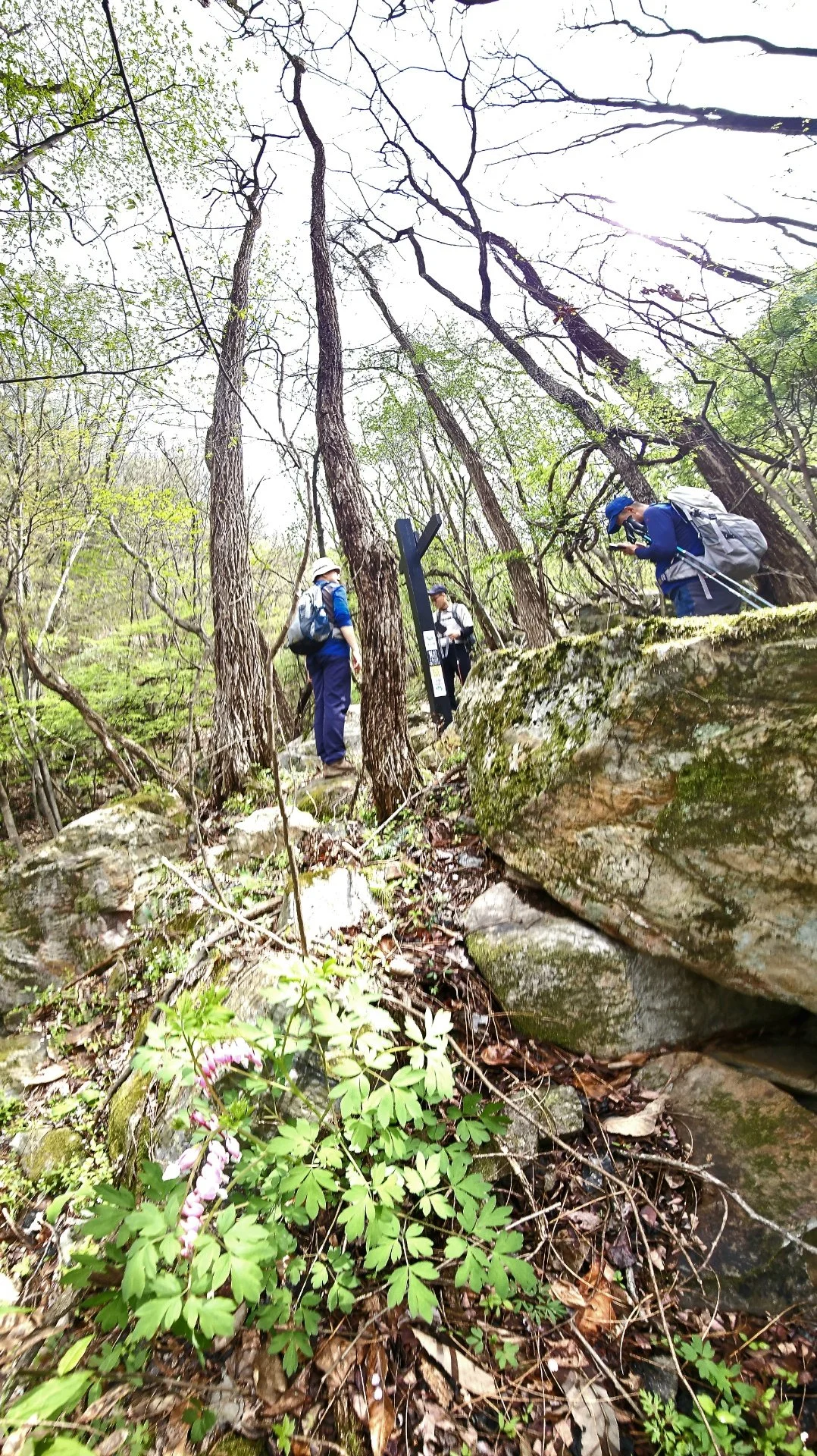 숲의 활엽수들은 저마다 연초록 잎사귀를 틔웠고, 순백색의 말발도리꽃, 바위틈에서 샛노란 꽃을 피운 괴불주머니, 추위에 떨듯 바람에 흔들리는 노랑제비꽃, 연분홍 고깔제비꽃 등이 고도를 높여감에 따라 차례로 인사를 건넨다.