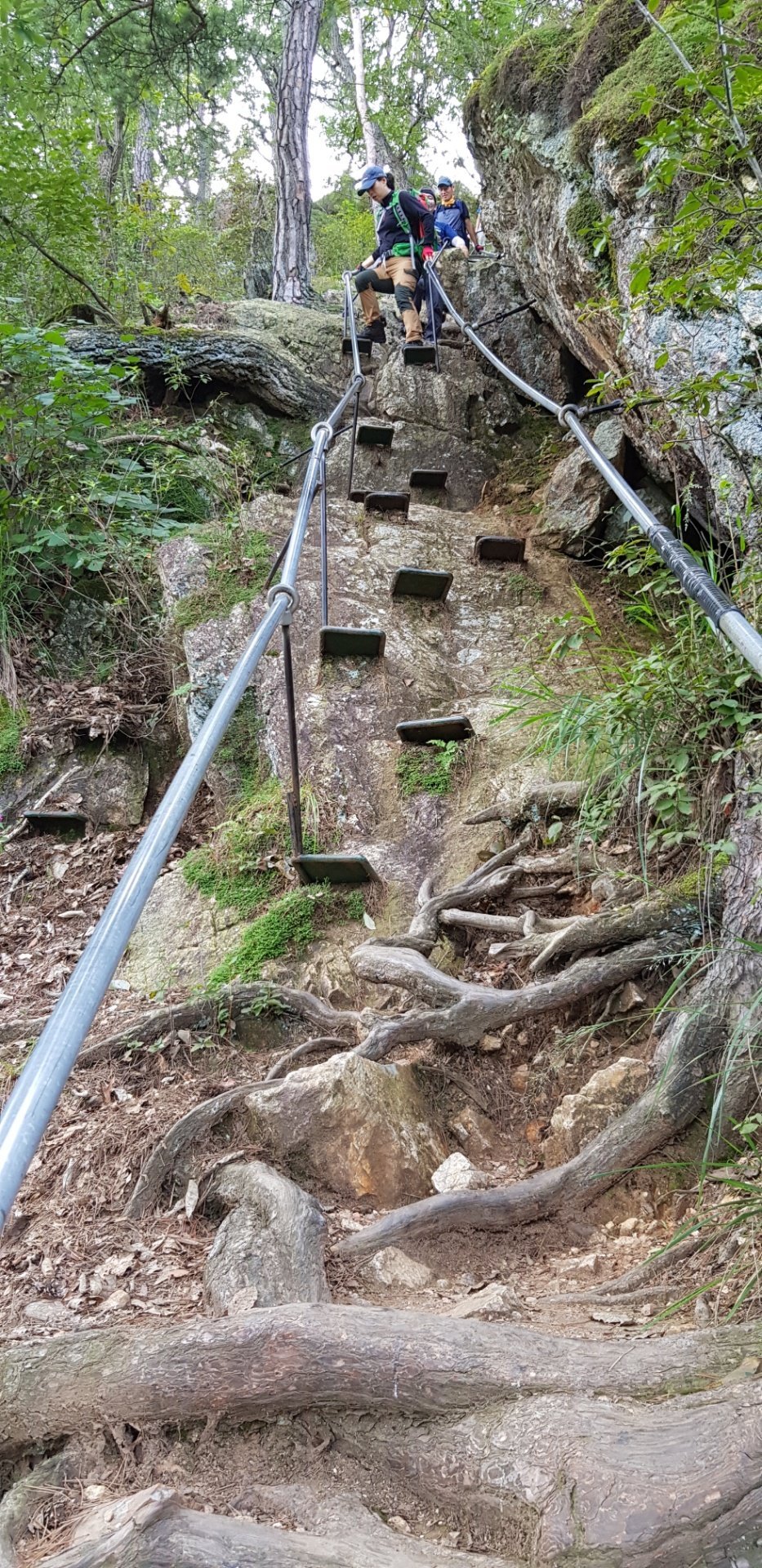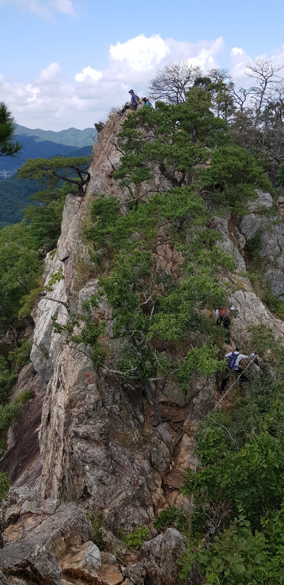 안내판의 '제일 위험한 구간'이란 경구처럼, 제8봉으로 가는 바윗길 계단은 가파르고 군데군데 바위에 박힌 철심 발판과 손잡이를 디디고 잡으며 올라야 한다.