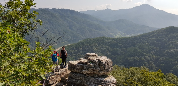 산행을 마친 산객 몇몇은 신발을 벗고 바짓가랑이를 걷어 올리고 얕은 곳을 택해 강을 건넌다. 산과 강, 그리고 사람들이 서로 유희하듯 어우러진 강가, 절벽 밑으로 난 난간을 따라 물 흐르는 소리 물놀이하는 소리 매미소리에 귀와 눈과 온몸을 내 맡기고 물 흐르듯 걷는다. 산에서는 보이지 않던 들꽃들이 강 가장자리 여기저기서 활짝 웃는 얼굴로 자꾸 발걸음을 붙잡는다.