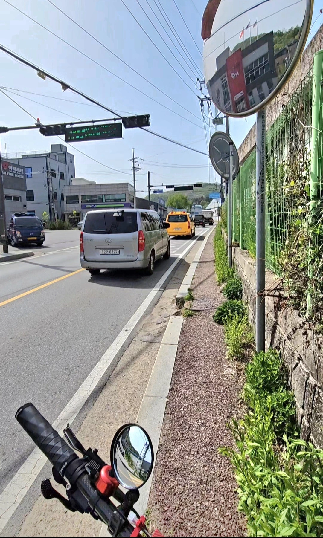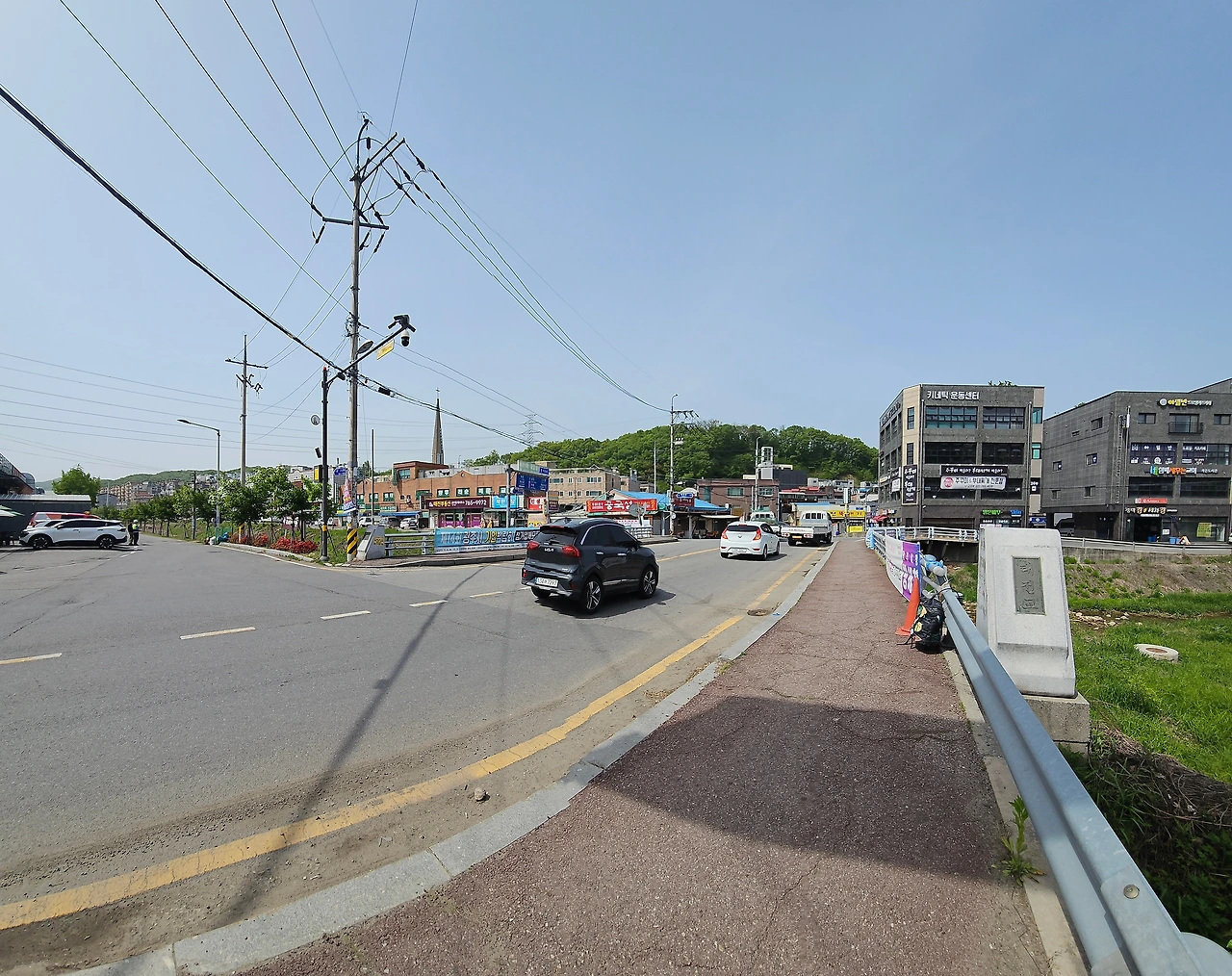두 하천의 합수부에서 직리천 상류 쪽으로는 자전거길이 없어, 왕복 2차선 고불로 차도 옆에 선심 쓰듯 내놓은 50~60cm 남짓 좁고 울퉁불퉁한 보도로 바퀴를 굴려 가야 했다. 그 길 좌우에도 수많은 공업사와 정비소 등이 혼재한다.
