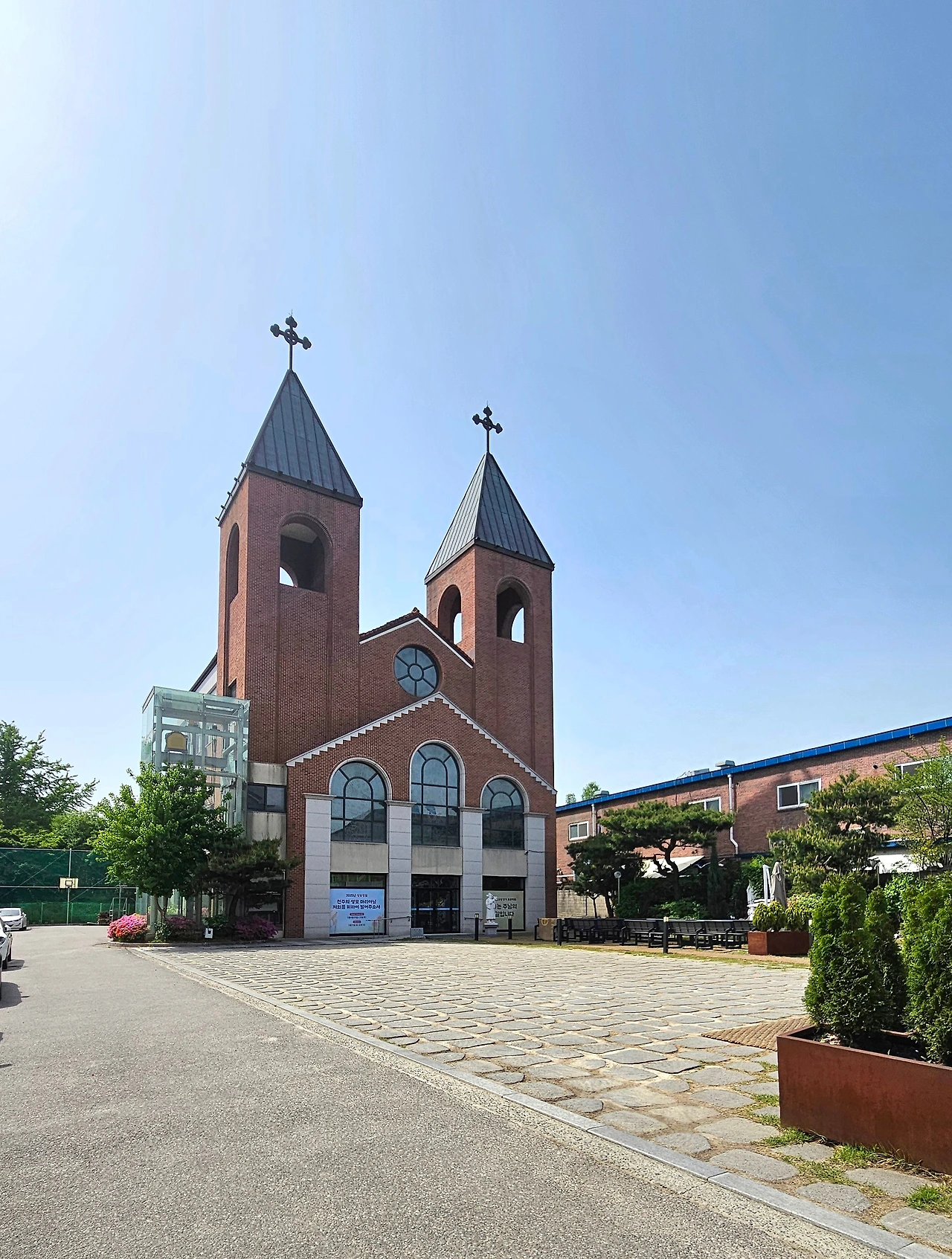 여느 하천이 발원하는 지점과 마찬가지로 산줄기 사이 계곡으로 치달은 목리천 발원지 부근에는 *늘문교회, **제일교회, 사랑하*는 요양원 등 종교시설과 요양시설 등이 지도 앱에 검색된다. 머리 위로 얼마 전 개통된 세종포천고속도로 '목리천교'가 지나는 목동마을회관에서 핸들을 되돌렸다. 목리천과 직리천으로 안겨드는 곳 부근에 자리한 광남동성당은 중소 공장 등이 어지러이 들어선 혼잡한 지대에 숨 쉴 틈을 제공하는 안식처처럼 느껴졌다.