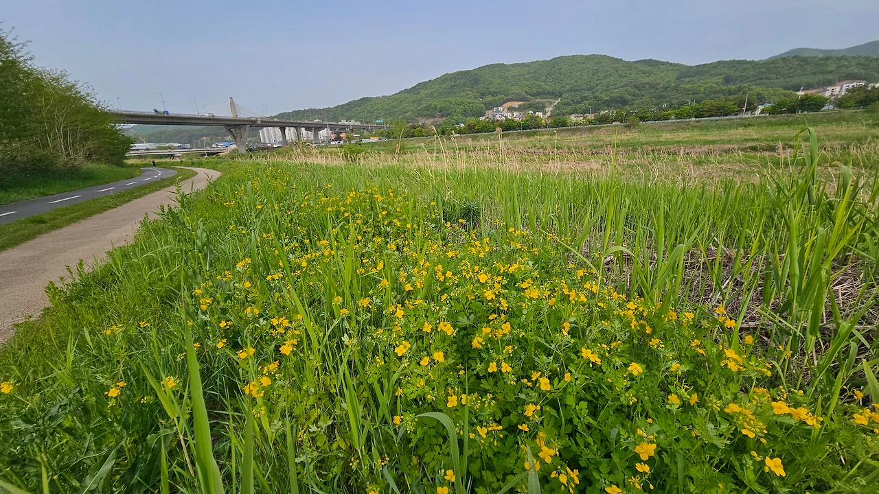 경안천 너른 하상에는 여전히 초록과 들꽃들이 자전거길을 따라 아스라이 멀리까지 봄의 향연장을 끝없이 펼쳐 놓고 있다. 25-05-08