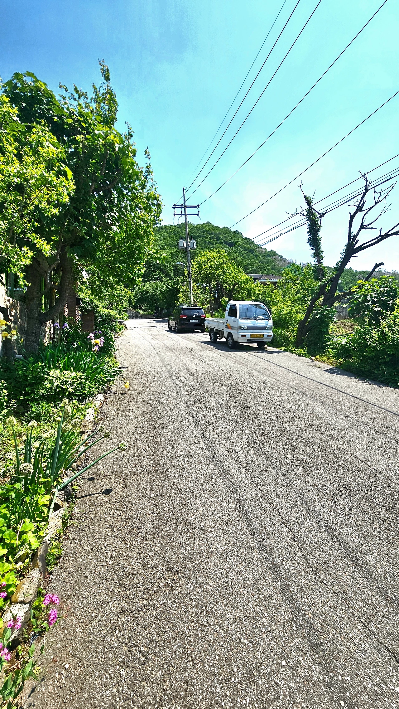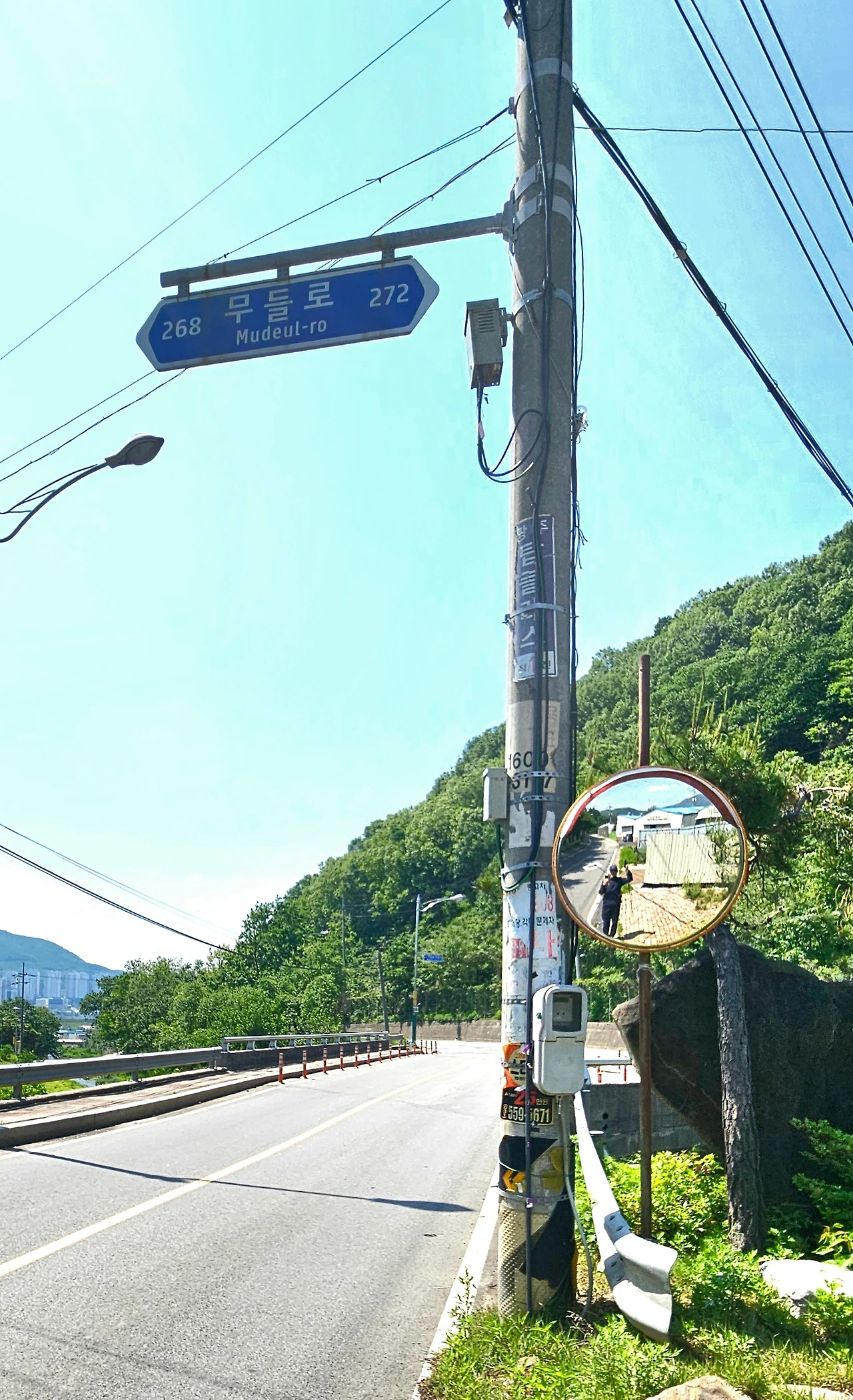 무들로 2차선 도로와 맞닿은 국수봉 가장자리는 옹벽 위에 철책까지 둘러쳐져 있어 들머리를 찾을 길이 막막하다. 텃밭에서 김을 매는 주민에게 물어봐도 잘 모르겠다는 대답이다. 지도 앱을 들여다보며 들머리가 어딜지 가늠해 보았다. 학동천 위에 놓인 무들교 부근에서 먹거리가 가득 든 큰 비닐봉지를 양손에 하나씩 든 키 큰 동남아인 하나가 스쳐 지나고, 자유롭게 배회하는 떠돌이 개 두 마리도 보인다. 그 개들은 짖지도 않고 모습도 유순한 것이 자유로이 떠도는 집시처럼 보였다.