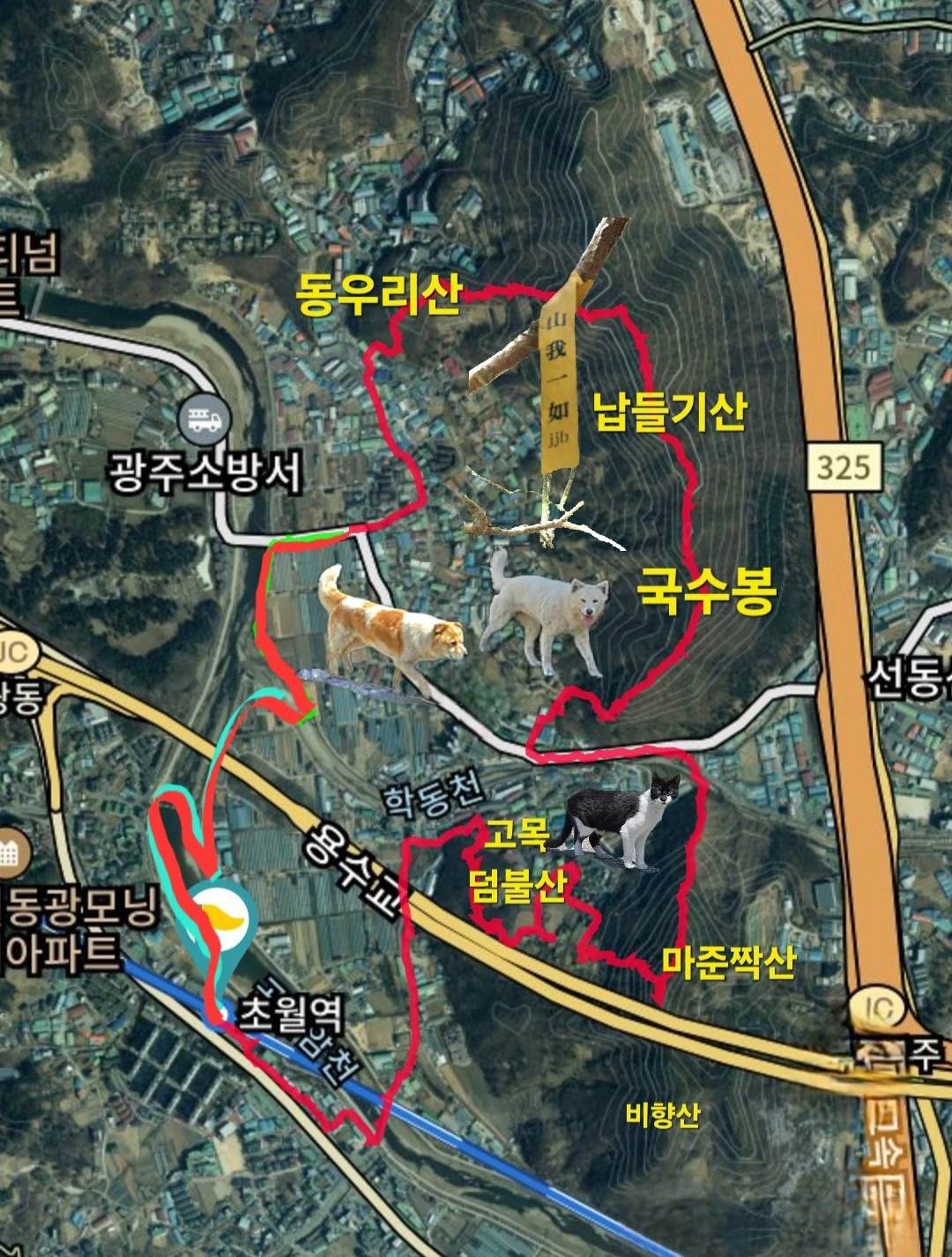 초월읍 선동리 국수봉을 탐방하기 위해 집을 나섰다. 경기도 광주시에 있는 여섯 개의 '국수봉(國守峯)' 가운데 도척면 진우리, 광주시 쌍령동, 초월읍 지월리, 광주시 중대동에 각각 자리한 국수봉은 이전에 모두 찾아보았었다. 나머지 두 개의 국수봉, 즉 초월읍 선동리의 국수봉과 곤지암읍 오향리의 국수봉 가운데 선동리의 국수봉과 그 주변을 둘러보기로 한 것이다.