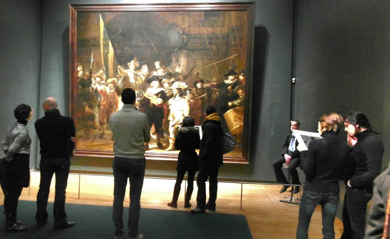 렘브란트(Rembrandt Harmenszoon van Rijn, 1606-1669)의 <야경> 앞에 선 관람객들