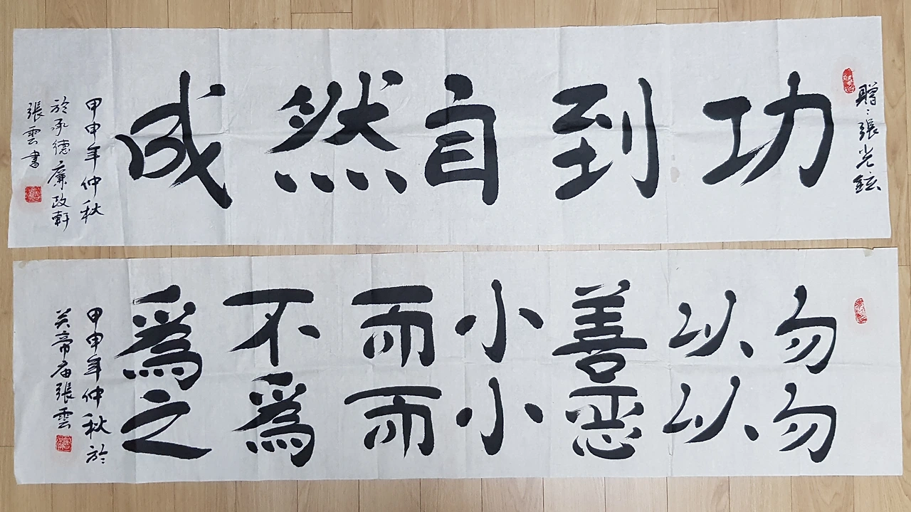그 장인은 명심보감에 나오는 위 글귀와 더불어 내 이름을 묻더니 흔쾌히 ‘미엔페이(免費)’_무료라며, 그 어두에 ‘증 장...(贈 张**)’이라는 글씨와 함께 휘호 한 장을 덤으로 써주는 선심을 베푼다.