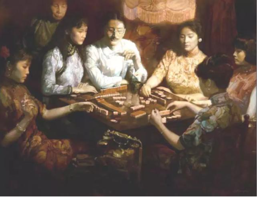특히, 인물들의 눈빛은 서로 교차되지 않는다. 모두가 마치 각자의 기억, 사연, 욕망에 갇혀 있어, 하나의 게임에 몰입해 있는 장면임에도 불구하고 고립된 개인들의 초상처럼 보이게 한다. 그림 속의 정적(靜)은 사라져 버린 황금시대의 상하이에 대한 그리움의 무게로 해석될 수 있다.