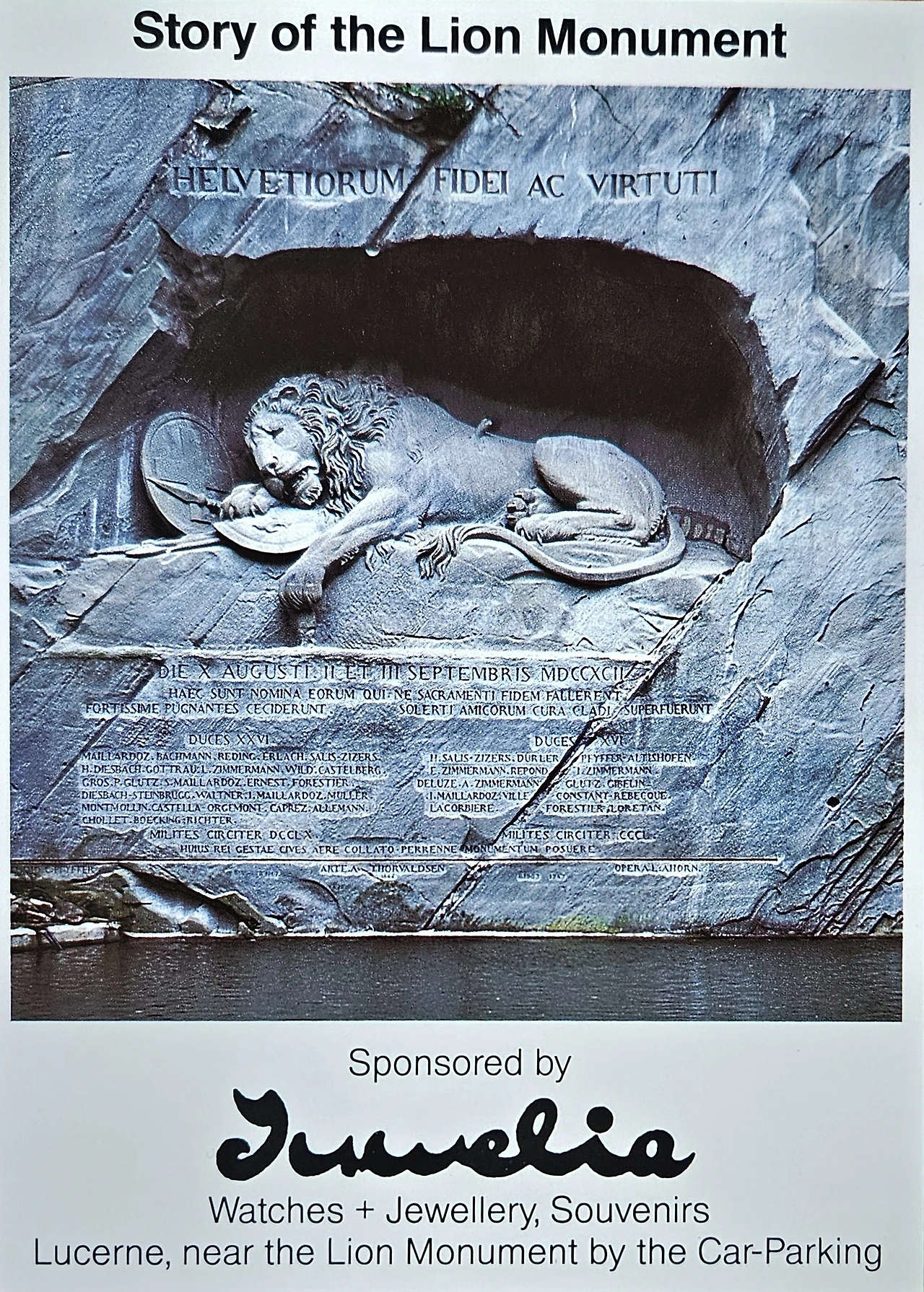 도시 남쪽, 숨 무성한 공원의 바위벽에 숨겨 놓은 듯 자리한 빈사의 사자상(Dying Lion Monument)은 프랑스혁명 당시 희생된 스위스 용병을 기리는 조각이다. 고통으로 일그러진 표정 속에 위엄을 잃지 않으려는 사자의 몸짓 속에 스위스 용병의 용맹과 충절이 배어있다. 유람선을 타고 호수 위를 가로지르자, 파란 하늘의 뭉게구름과 그림 같은 마을들이 수면 위에 어른거리고, 이따금 작은 요트가 수면에 비친 풍경을 흩트리며 옆을 스쳐 지나간다.