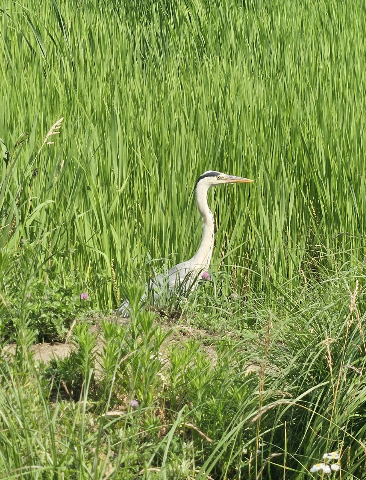판교 운중동으로 내려서 운중천변 자전거길을 따라 하류로 페달을 밟았다. 천변을 걷는 사람들이 제법 많아졌고, 맨발로 냇물 속을 까치발 걷듯 조심조심 걷는 여학생들도 눈에 띈다. 온갖 초목으로 무성한 천변 습지와 방천은 여전히 들꽃이 흐드러지게 수놓고 있다.