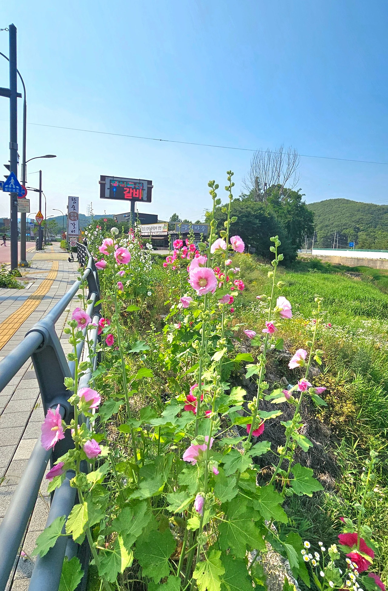 서현동을 지나 정자동, 구미동을 통과해 동막천으로 방향을 틀었다. 동막천의 자전거길은 탄천만큼 정비가 잘 되어 있지 않아서, 몇 차례 인도와 차도를 번갈아 오르내려야 했다. 운재산 자락을 넘어 고기리 낙생저수지를 스쳐 지나오니, 길가에는 접시꽃이 곱게 피어 자태를 뽐내고, 전깃줄 위에는 어치들이 나란히 앉아 다정히 이야기를 나누고 있었다.