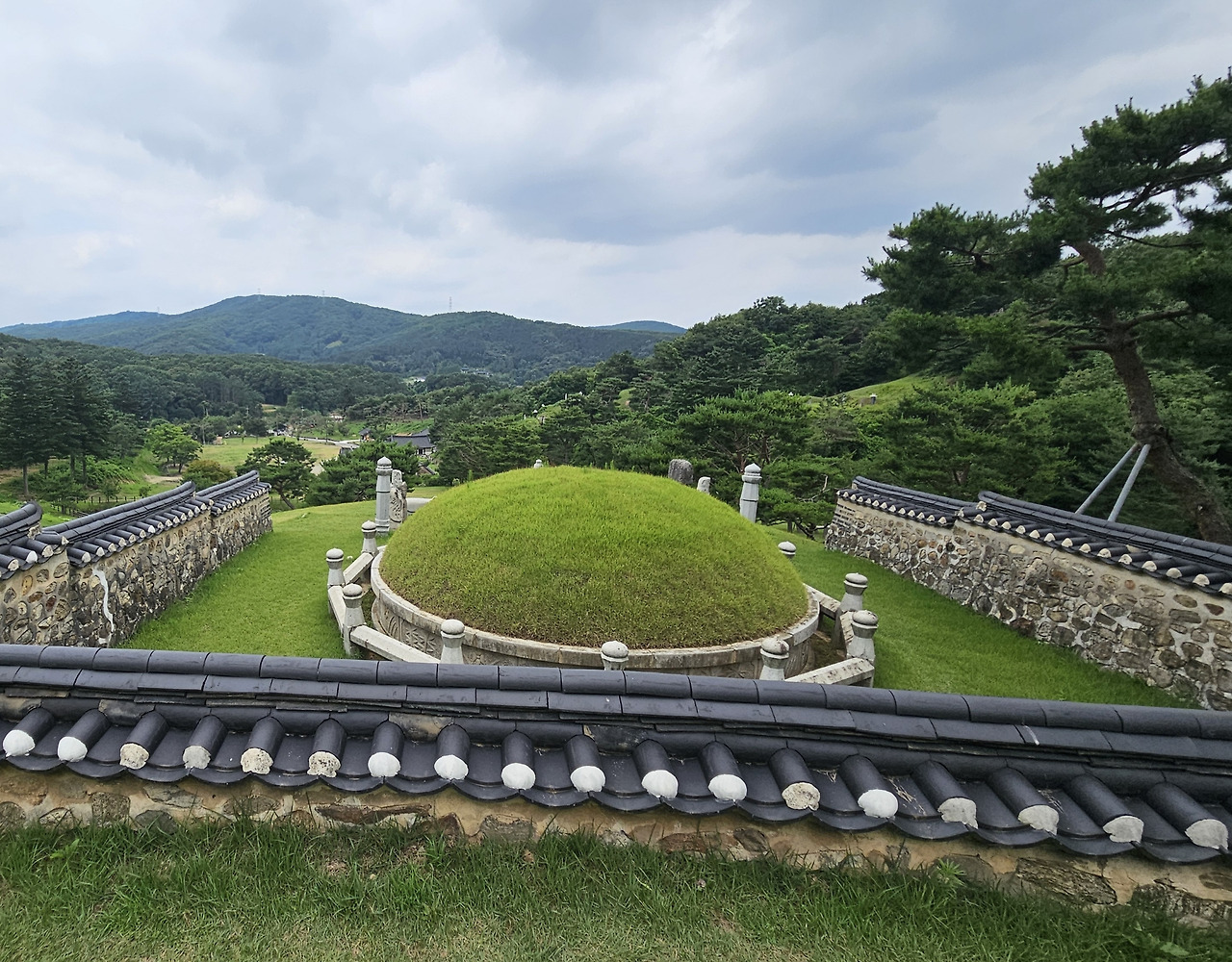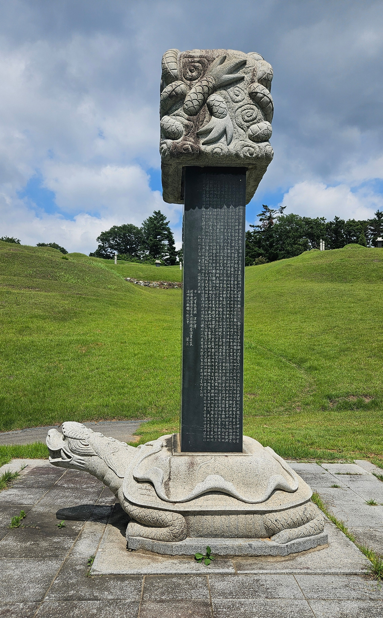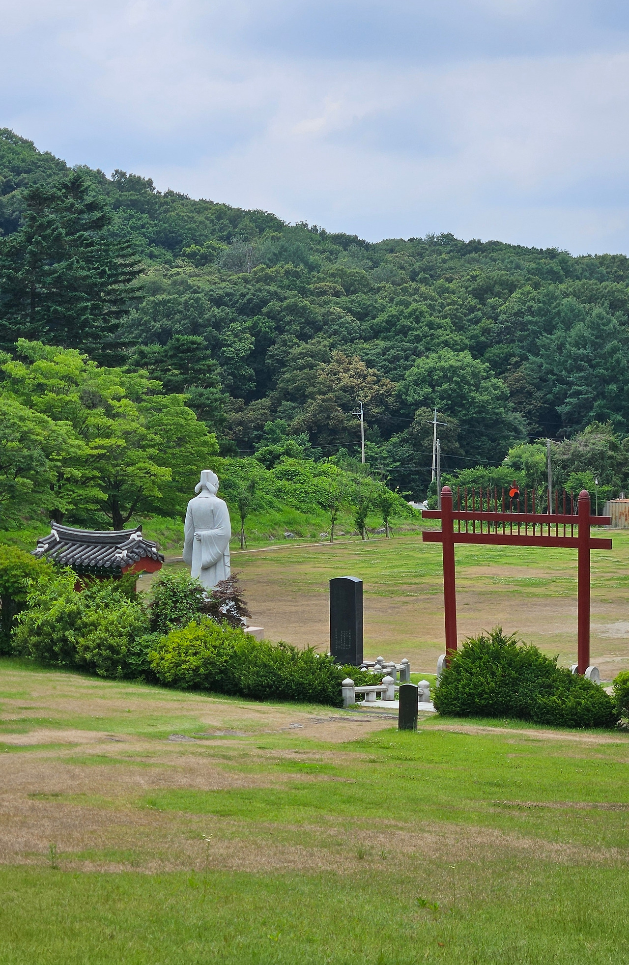 연안 이 씨 묘역에 포은의 증손녀가 시집온 인연으로 이곳에 포은의 묘소가 함께 자리했다니, 생과 사를 넘어 이어진 핏줄과 인연이 아름답게 느껴졌다. 비석 군을 지나 너른 잔디 마당을 건너니 포은 동상이 나를 맞았다. 동상 옆에 새겨진 그의 단심가와 그의 어머니가 지은 백로가를 한 번 읊조리니, 마음이 저절로 숙연해진다. 묘소로 오르는 길, 늠름한 노송은 여전히 그 자리에 서 있고 잔디는 가지런히 다듬어져 있다.