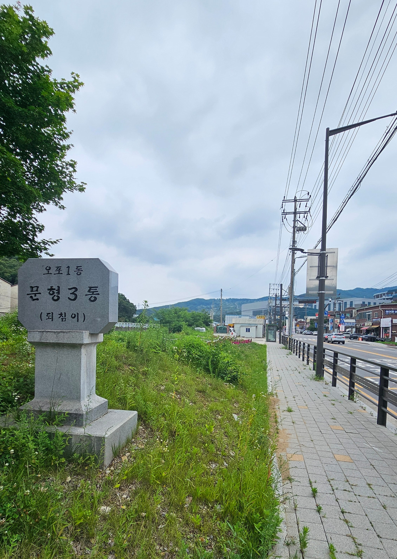 담장 옆 탐스런 백합꽃 아래에 앉아 있던 고양이 한 마리가 낯선 불청객이 귀찮다는 듯 슬그머니 자리를 피한다. 향수산 북쪽 긴 산줄기 끝에서 오포천변 자전거길이 끊기고, 하천 반대편으로 건너갈 다리도 없다. 페달을 밟아 얕은 물을 호기롭게 건너려다 한쪽 발만 물에 빠트리고 뒤로 물러서고 말았다. 다시 매산교로 되돌아 차도를 따라 우회해 오포천변으로 닿았다.