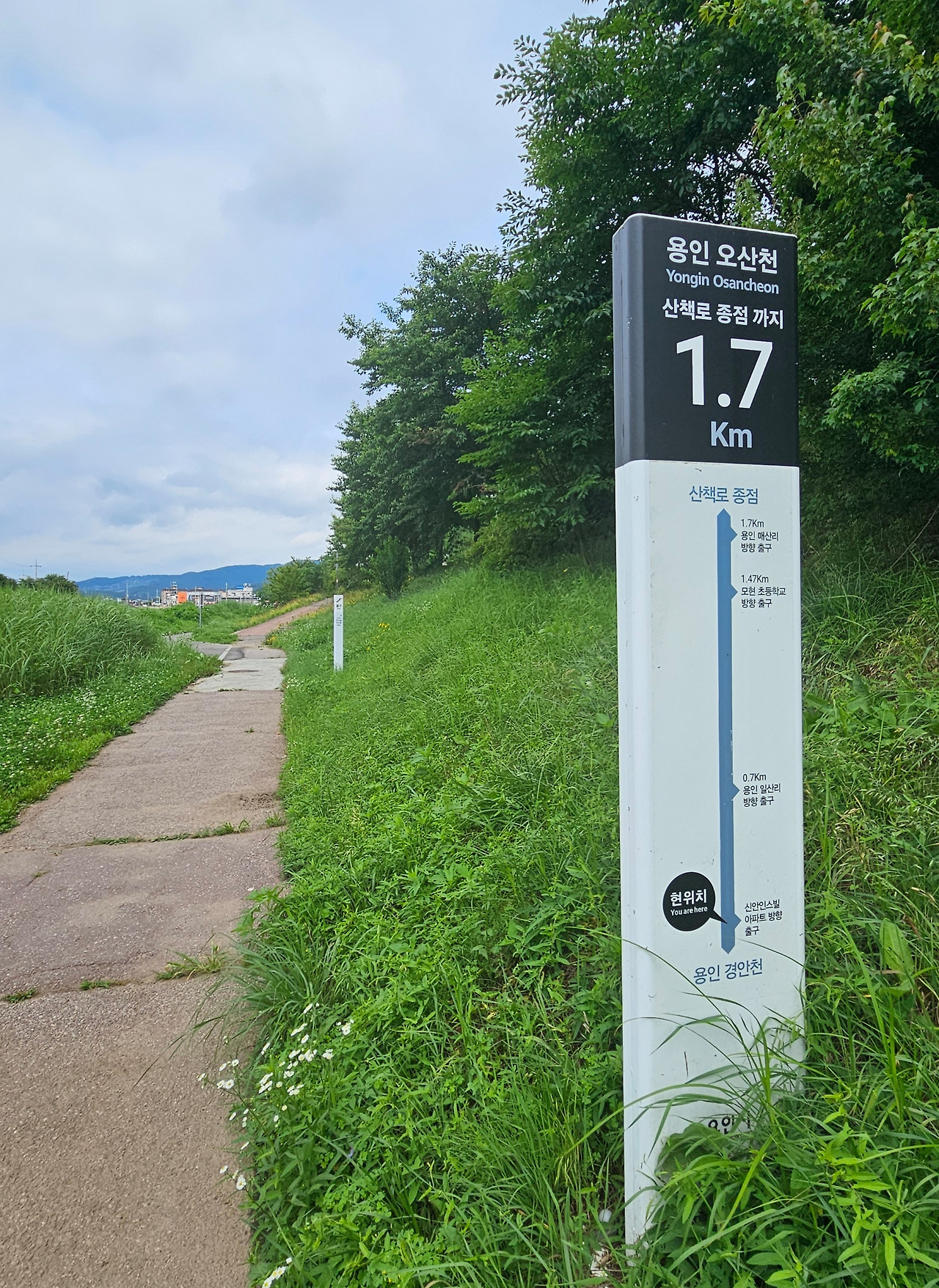 어느덧 다시 광주에서 용인 모현읍 오산리로 바뀌는 경계를 넘는다. 지도 앱은 오산천 발원지까지 4km 남짓, 20~30분 거리라 했지만, 내 더딘 페달로는 그보다 더 걸리지 싶었다.