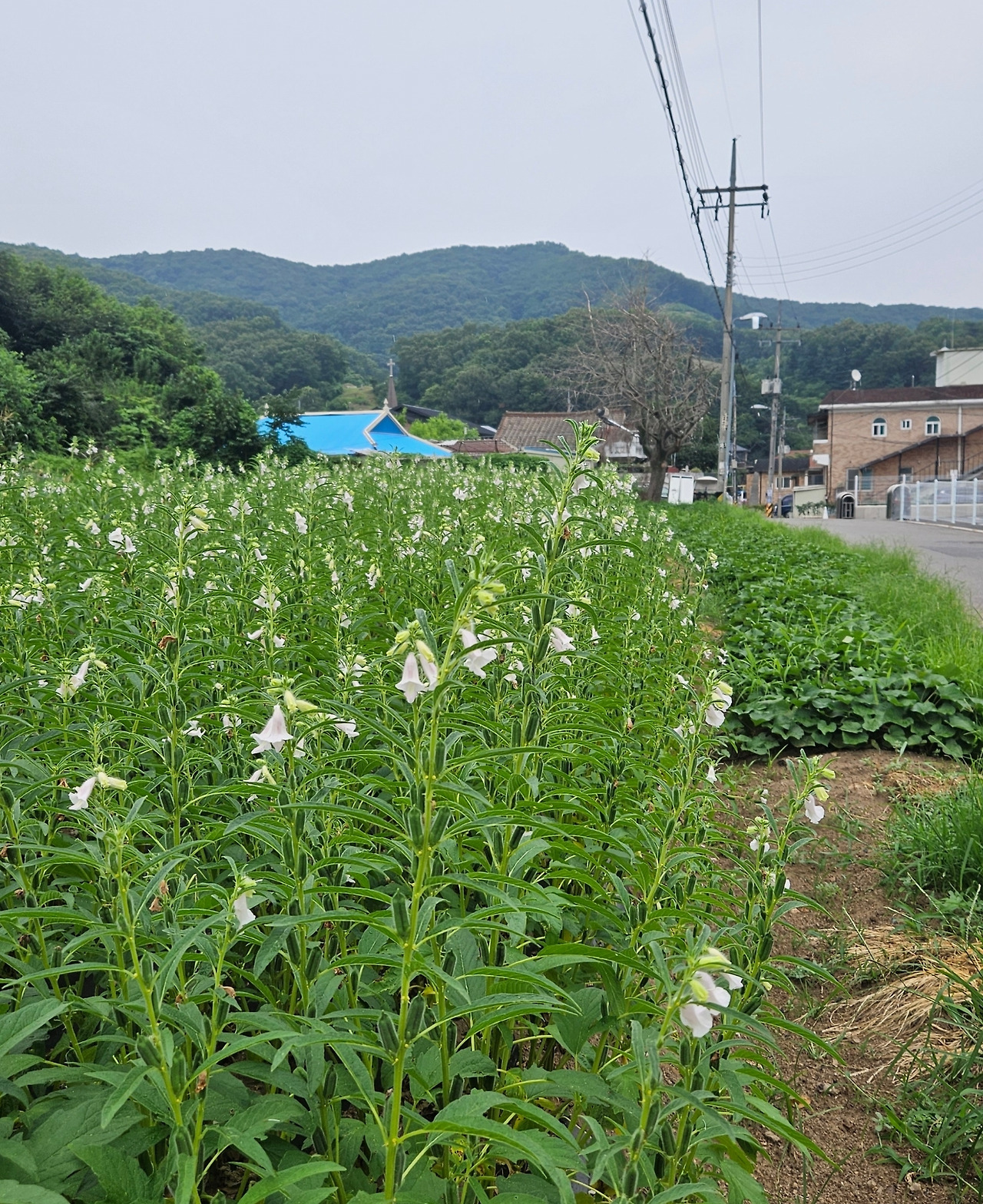 탁 트인 전망을 주진 않지만, 숲 속에서 명상하듯 걷기에 이만한 길도 없겠다 싶다. 직리천의 곁가지 하나가 시작되는 곳 부근에서 임도 아래로 홀연히 마을이 내려다보였다. 칡잎에 떨어지는 빗소리가 점점 커졌다. 텃밭에는 열매에 봉지를 씌운 배나무, 꼬맹이 주먹만큼 여문 사과나무, 금강초롱을 닮은 꽃을 주렁주렁 매단 참깨가 농가와 어우러져 풍성한 가을을 꿈꾸고 있다.