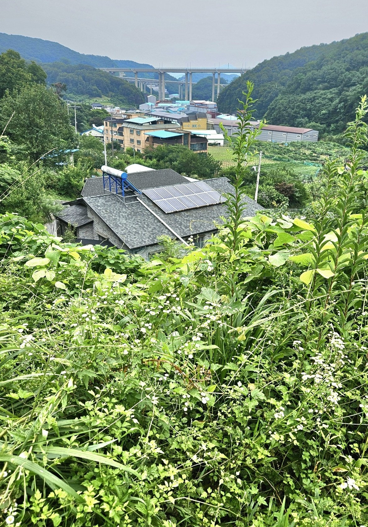마을회관 옆 슈퍼 그늘막 벤치에는 동네 어르신 서넛이 소주와 안줏거리를 놓고 도란도란 이야기꽃을 피우고 있다. 정겨운 시골마을 풍경이다. 10km 남짓 되는 호젓한 하이킹을 마치니, 더위를 식혀 주려는 듯 마침 빗줄기가 굵어지며 흩뿌리니 반갑고 고맙기 그지없다.