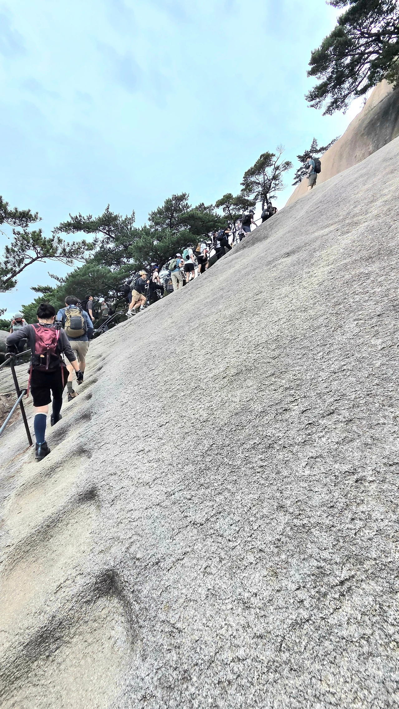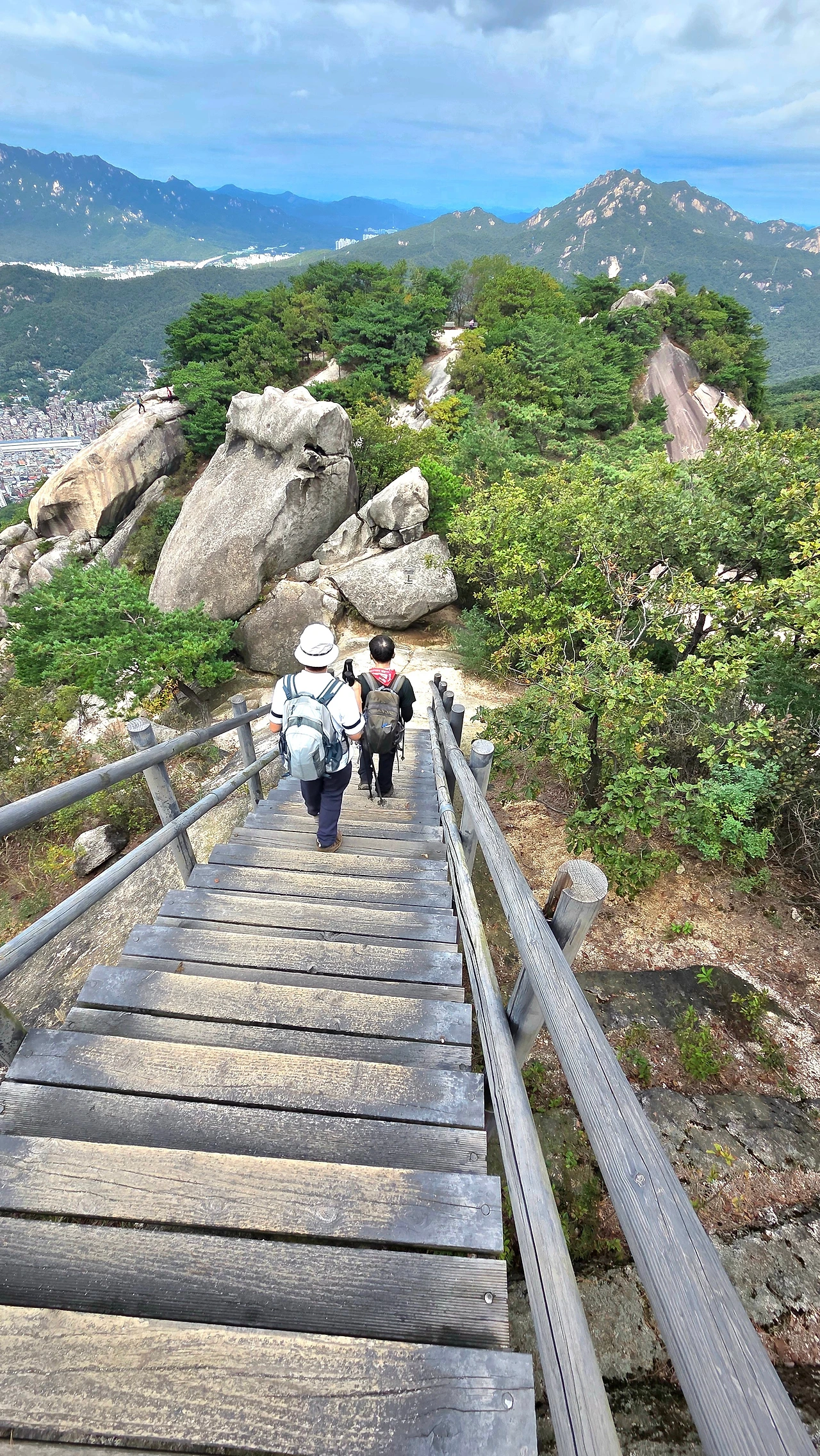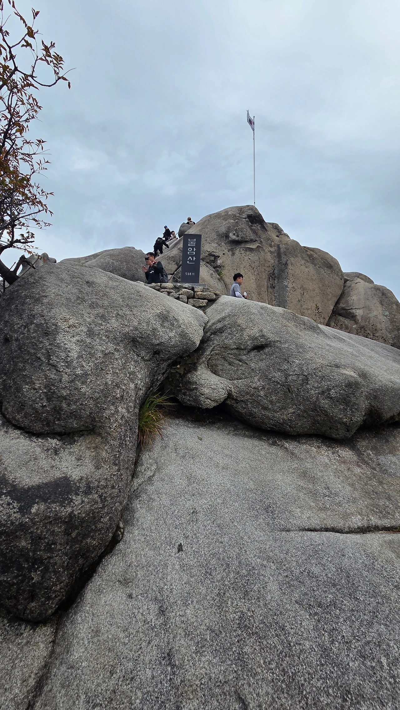 산 정상부에는 많은 산객들이 정상 표지석과 함께 사진을 남기려고 길게 줄지어 차례를 기다리고 있다. 우리도 차례를 기다려 기념사진을 남길 수 있었다. 수락산의 한자를 묻는 내 질문에 '水落山'이라는 정답 대신에 '秀樂山'이라는 잘못된 답을 주는 AI가 웃음을 자아냈다. 힘든 기색이 역력하지만 등로변 곳곳 전망 좋은 곳에 올라서서 탄성을 자아내며 자리를 뜰 줄 모르는 산객들의 모습에서, 어쩌면 ‘빼어날 수(秀), 즐길 락(樂)’이라는 한자가 이 산에 더 잘 어울릴지도 모르겠다는 생각이 들었다.