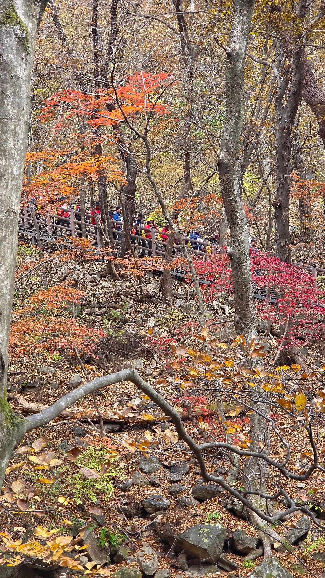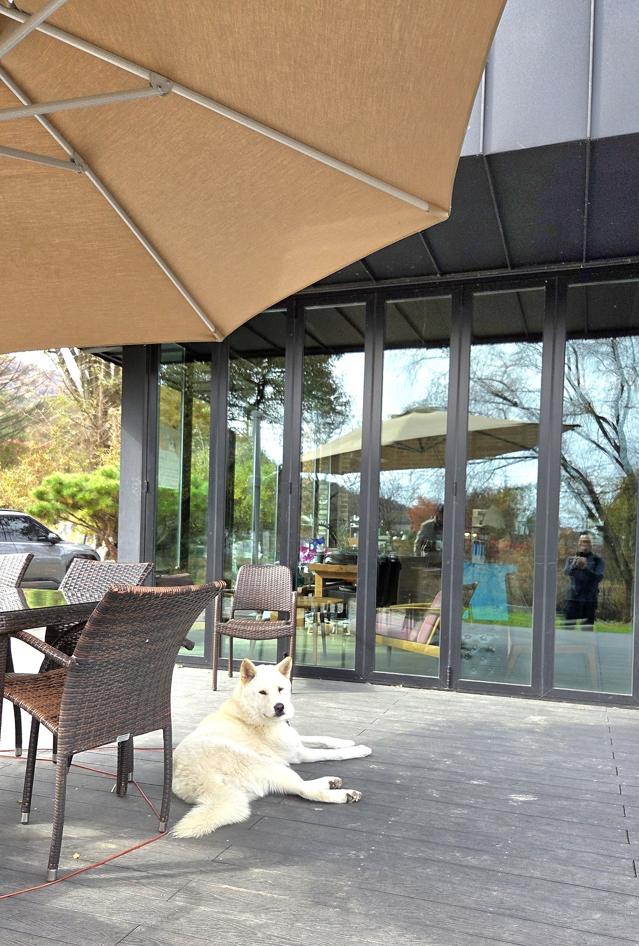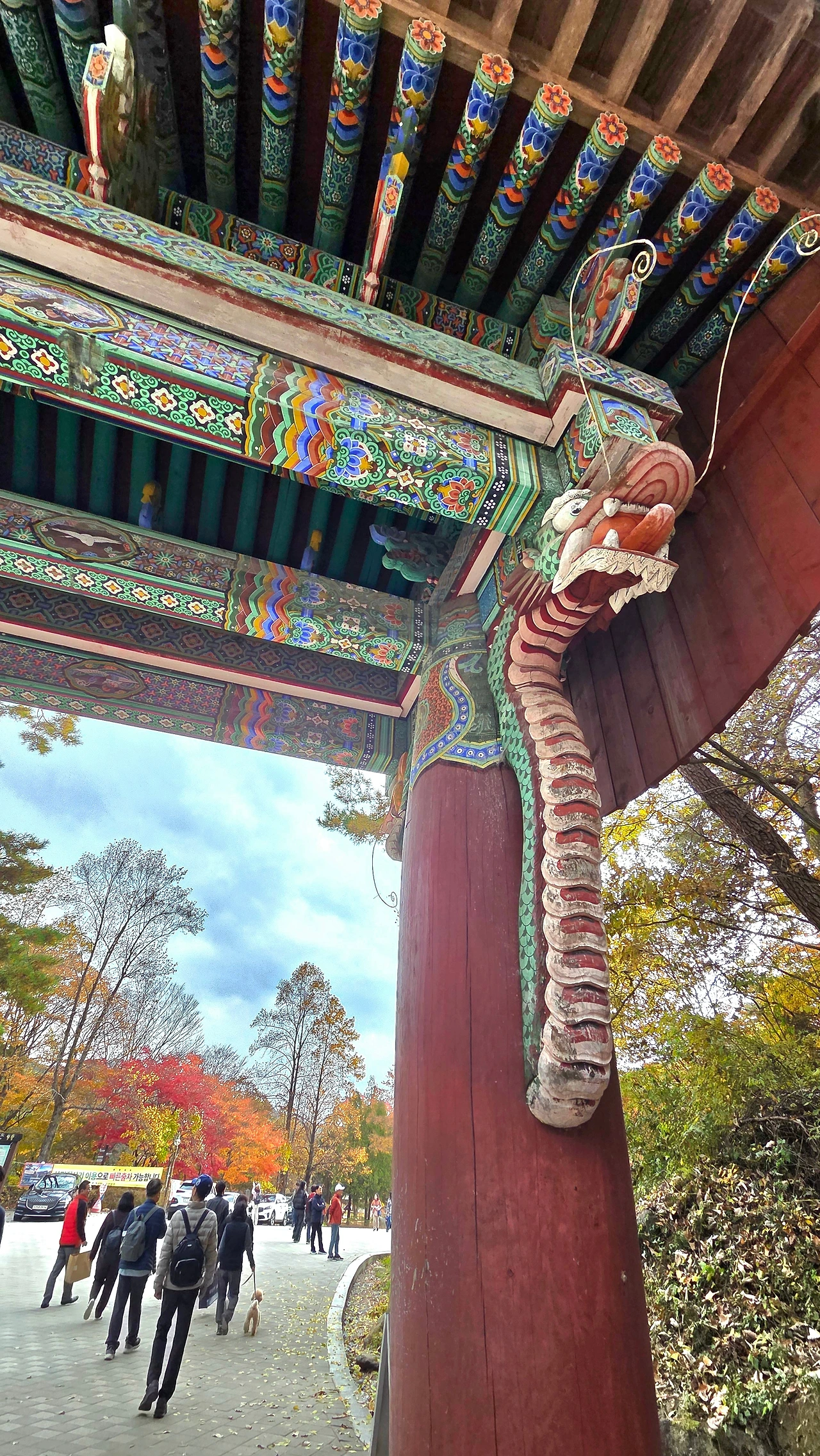 집을 출발한 지 두 시간 남짓 만에 용문사 입구에 다다르니, 주차장 쪽으로 차량 행렬이 길게 늘어서 있었다. 우리는 도로변의 한 카페에 들러 주인에게 주차 허락을 받은 후 커피를 들고, 용문사까지 2km여를 천천히 걸어서 올랐다. 가을빛이 깊게 스며든 도로변의 단풍은 마치 화폭 위에 물감을 흩뿌린 듯 붉고 노랗게 빛났다. 남녀노소 가릴 것 없이 모두 단풍에 마음이 흠뻑 물든 듯 즐거운 표정들이다.