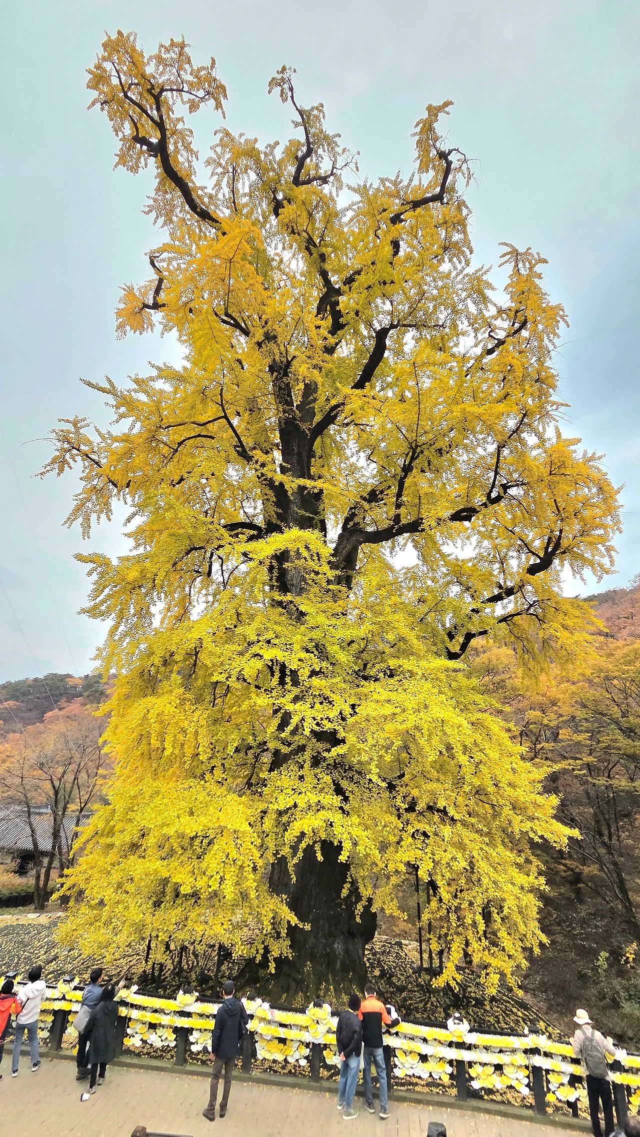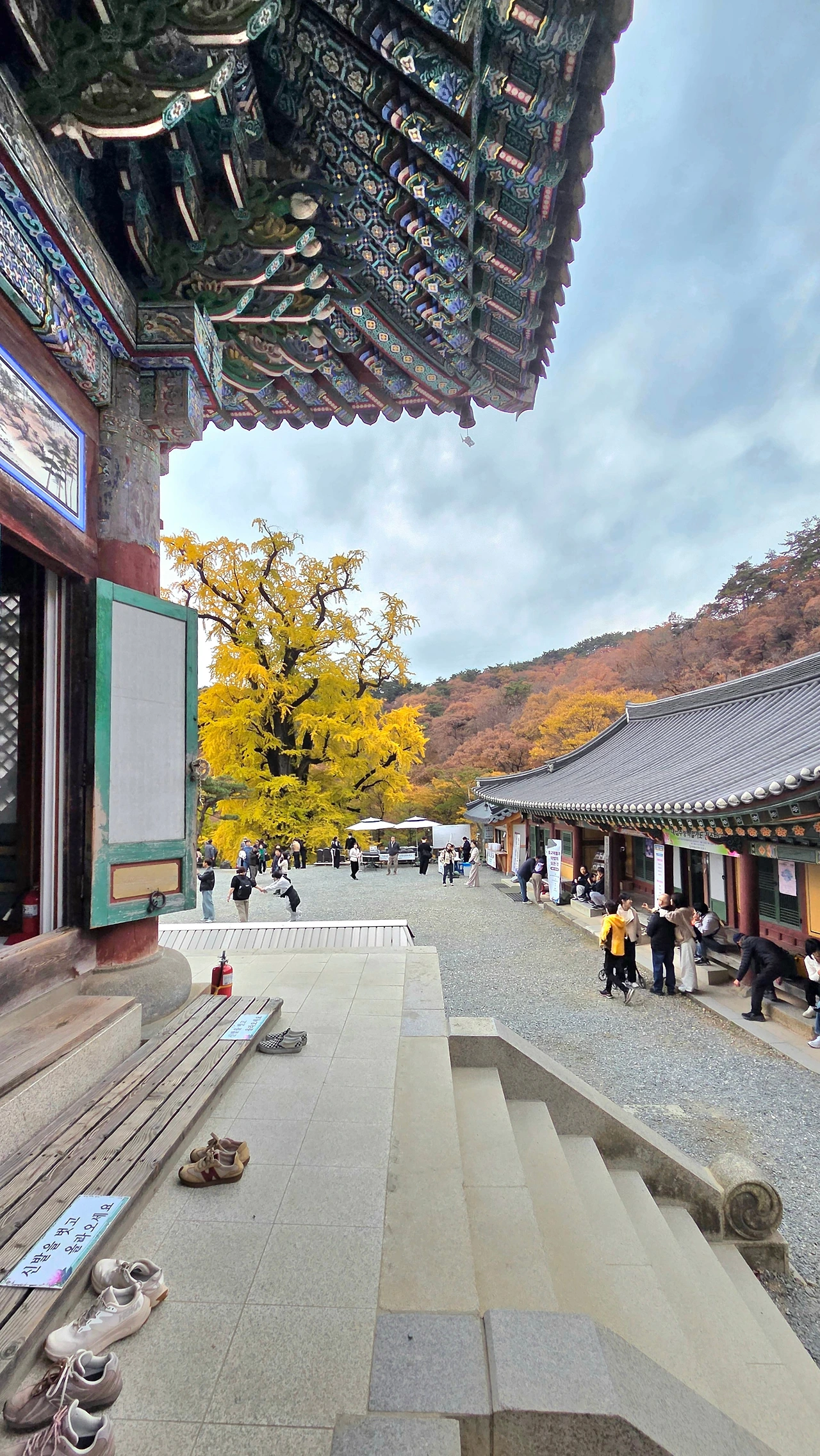 대웅전, 지장전, 금동관음보살좌상, 범종각, 산령각 등을 둘러보는 동안에도 시선은 자꾸만 은행나무 쪽으로 향했다. 보는 자리마다 그 형체가 달라지고, 햇살에 닿은 금빛 잎들은 미묘하게 색을 바꾸며 빛났기 때문이다. 순간마다 다른 표정을 짓는 듯한 은행나무의 자태는, 천백 년 세월을 견딘 존재만이 지닐 수 있는 기품이자 신비라는 생각이 들었다.