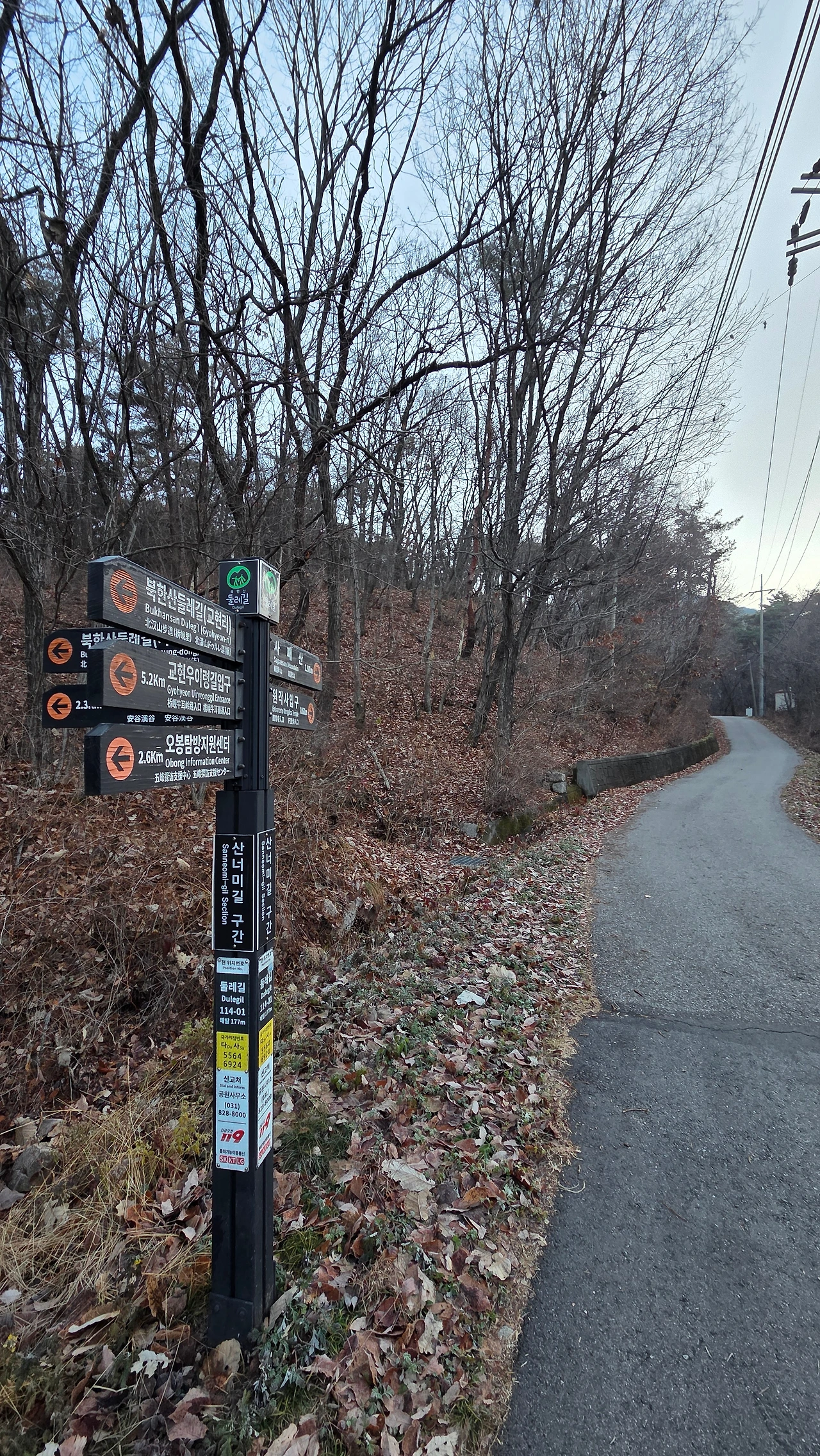 산객이 없는 계곡 위로 길게 드리워진 그림자만 우리 일행과 함께 했다. 긴 계곡이 다하고 송추마을이 가까워질 무렵, 가을의 끝자락 정취를 붙잡아보려는 듯 몇몇 산보자들이 눈에 띄었다.