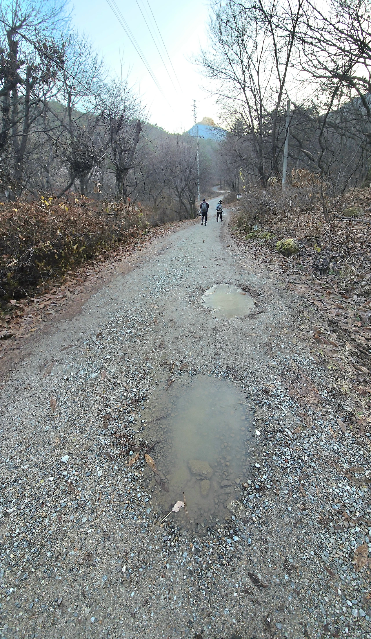 보온병 속 뜨거운 물에 탄 커피로 추위를 떨치고 있을 즈음 선로로 열차가 들어왔고, M과 B 두 친구만을 달랑 내려놓고 플랫폼을 미끄러지듯 벗어났다. 원각사 입구에 도착한 우리 일행은 차를 세우고 산행을 시작했다. 길바닥 작은 물웅덩이는 얼어 있고 냉기가 온몸으로 스며든다. 계곡은 물이 말랐고, 숲의 나무들은 앙상한 가지를 드러낸 채 겨울의 동면을 준비하고 있다.