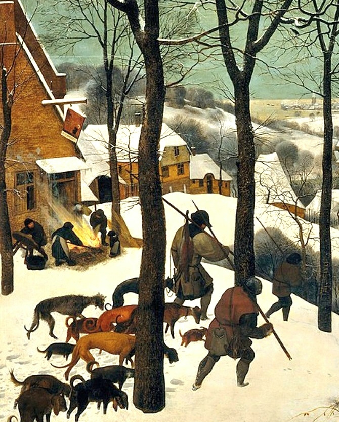 플랑드르 르네상스 회화를 대표하는 화가 가운데 한 사람인 피터 브뤼겔(Pieter Bruegel the Elder, 1525~1530년경 출생 1569년 사망)이 1565년에 그린 「눈 속의 사냥꾼들」이 그것이다.