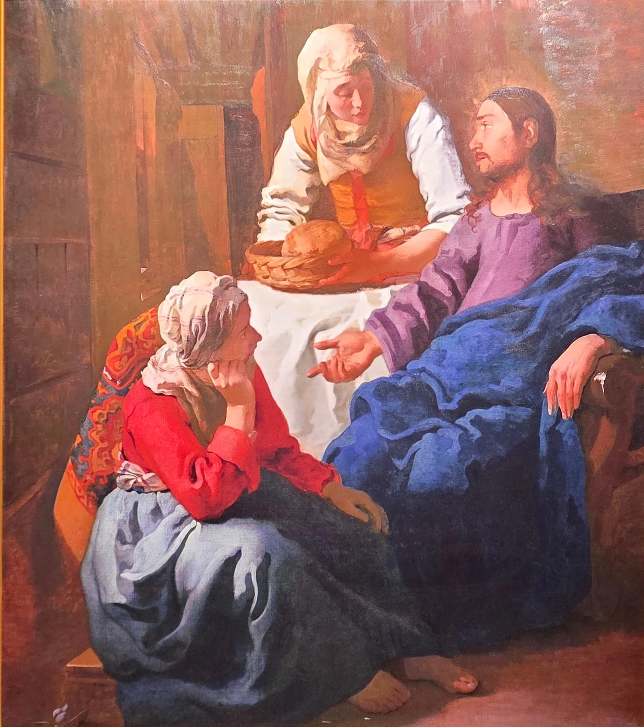 첫 번째 섹션 ‘빛의 탄생_초기 베르메르, 1653-1657’은 베르메르 회화의 출발점을 보여준다. <디아나와 님프들>, <마르타와 마리아의 집에 있는 그리스도>, <성 프락세디스>와 같은 초기작들은 강한 명암 대비와 종교적 서사를 담고 있지만, 이미 인물의 감정을 절제하고 빛을 부드럽게 다루려는 흔적이 엿보인다. 이어지는 <뚜쟁이>와 <잠든 하녀>를 거치며 그는 신화와 종교에서 일상의 실내로 관심의 초점을 이동시킨다. 이 변화는 단순한 소재 전환이 아니라, ‘무엇을 그릴 것인가’에서 ‘어떻게 바라볼 것인가’로의 근본적 이동이었다.