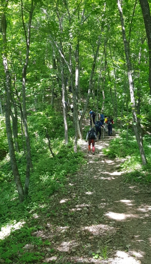 무성한 숲길을 혼자서 걸을 때면 마음이 편안하지만, 한편 호랑이는 말할 것도 없고 곰이나 똬리 튼 독사와 같은 짐승도 나타날 리 만무하겠지만 두려운 마음도 꼼틀대기 마련이다. 가끔 돌부리를 일부러 스틱으로 탁탁 치며 두려움을 물리치고 혹여 어디서 달려들지도 모를 멧돼지도 경계했다.