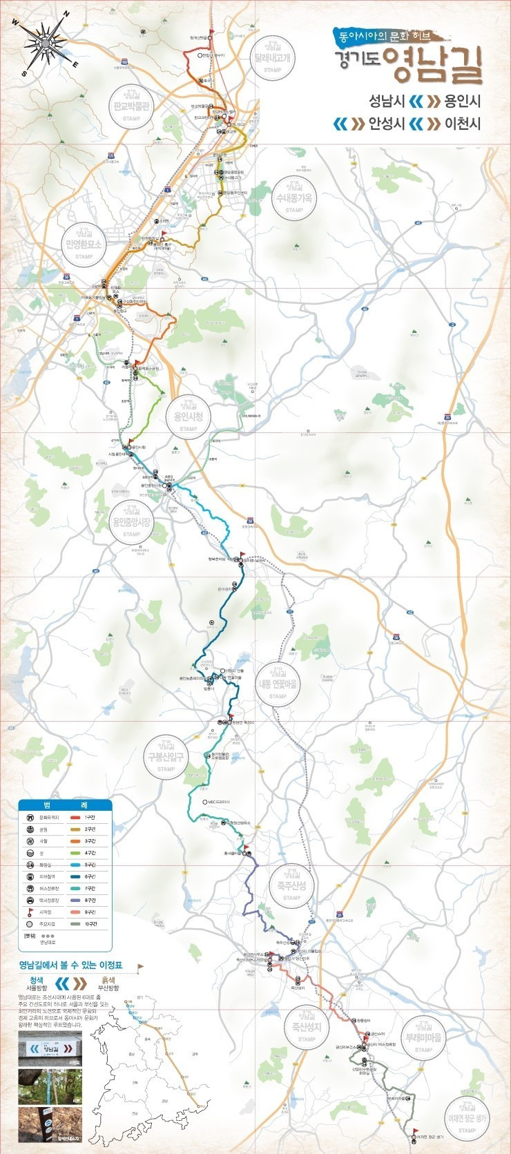 조선시대 서울과 부산을 잇는 최단거리 도보 노선인 영남대로, 그중 경기도 구간의 원형을 바탕으로 조성한 역사문화 도보탐방로가 영남길이다. 작년 초부터 총 116km 10개 구간을 한 두 구간씩 나누어 걸었는데, 전 구간 탐방을 끝낸 친구들과 달리 나는 제5구간에 이어 마지막 제1구간을 남겨두고 있다. 영남길 퍼즐 완성까지 이젠 한 조각만 남은 셈이다.