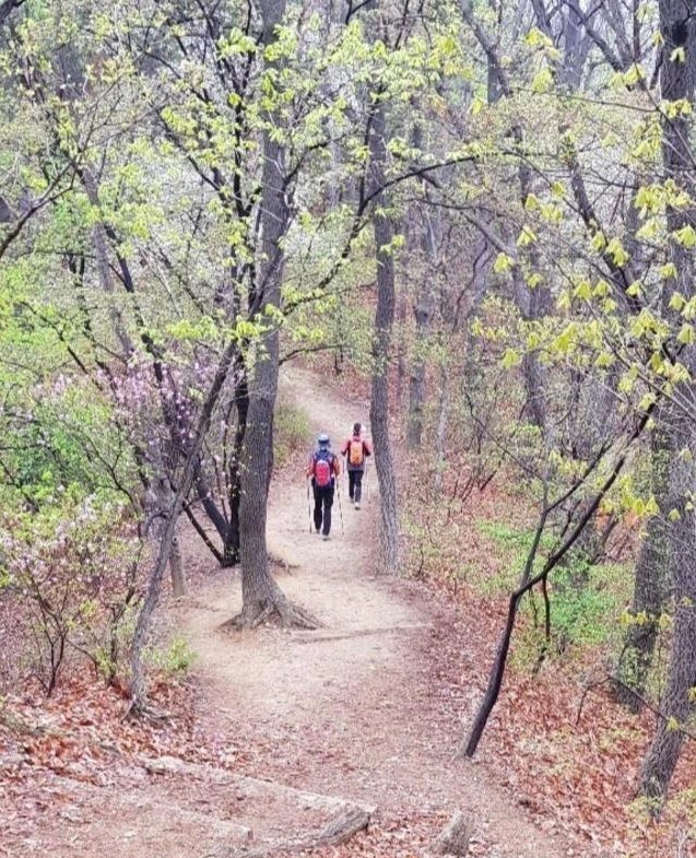 흙으로 덮인 육산인 청계산은 걷기 편하지만 길 위에 젖은 낙엽이 깔려 있어 더욱 푹신하고 걷기 수월하다. 과천을 사이에 두고 이웃한 관악산과는 서로 개성과 특징이 달라도 너무 다르다.