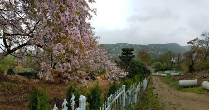 금토동 능안골로 내려섰다. "나의 살던 고향은 꽃 피는 산골 복숭아꽃 살구꽃 아기 진달래..." 노래 <고향의 봄> 가사에 나오는 곳이 바로 이곳이 아닐까 하는 생각이 든다. 청계산 자락에 안긴 한적한 산골 같던 이곳에도 개발 바람이 불어 닥쳐서 산자락 가장자리마다 구획을 짓고 경계를 가르는 철망이 둘러쳐져 있고, 포클레인은 땅을 들쑤셔 파고 있다.