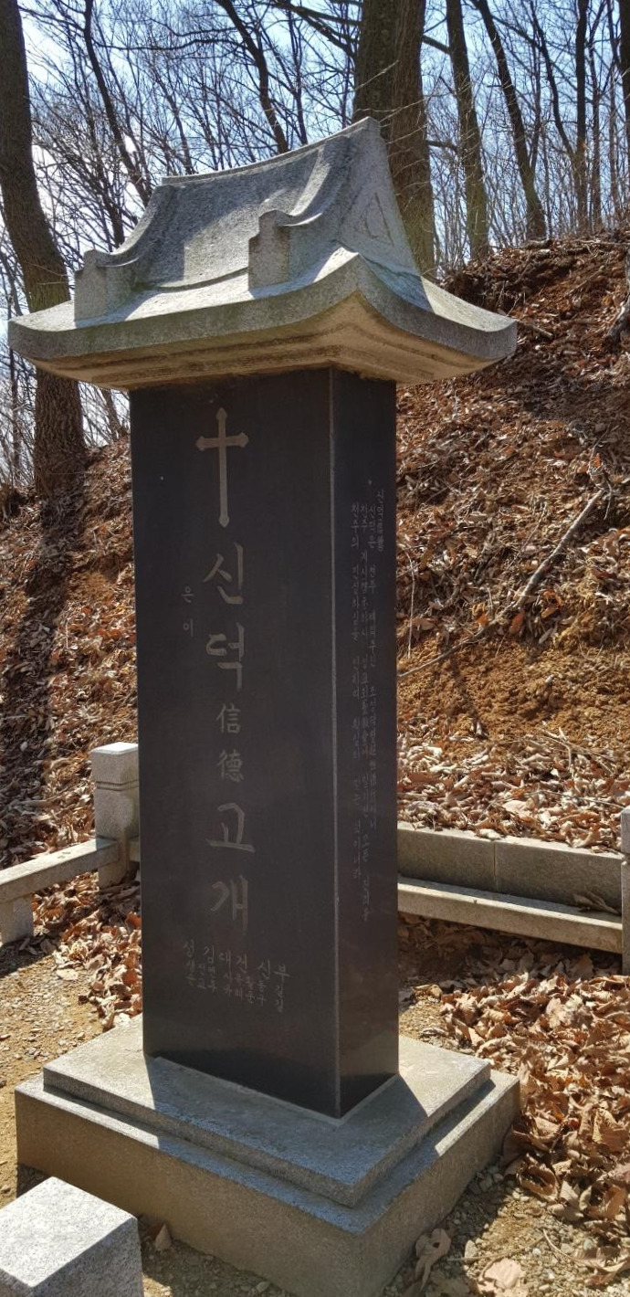 칠봉산과 은이산 자락이 낮아지며 서로 만나는 곳은 성인 김대건 신부의 '생전 사목활동 길이요 순교 후 유해 운구 길'이 되었다는 신덕 고개다. 망덕 애덕과 함께 삼덕 고개라 불리는 신덕 고개는 새남터에서 순교한 성 김대건 신부의 시신을 수습해서 이민식 빈첸시오(1829-1921)가 미리내 성지로 모시고 갈 때 걸었던 구간 중 일부라고 한다.