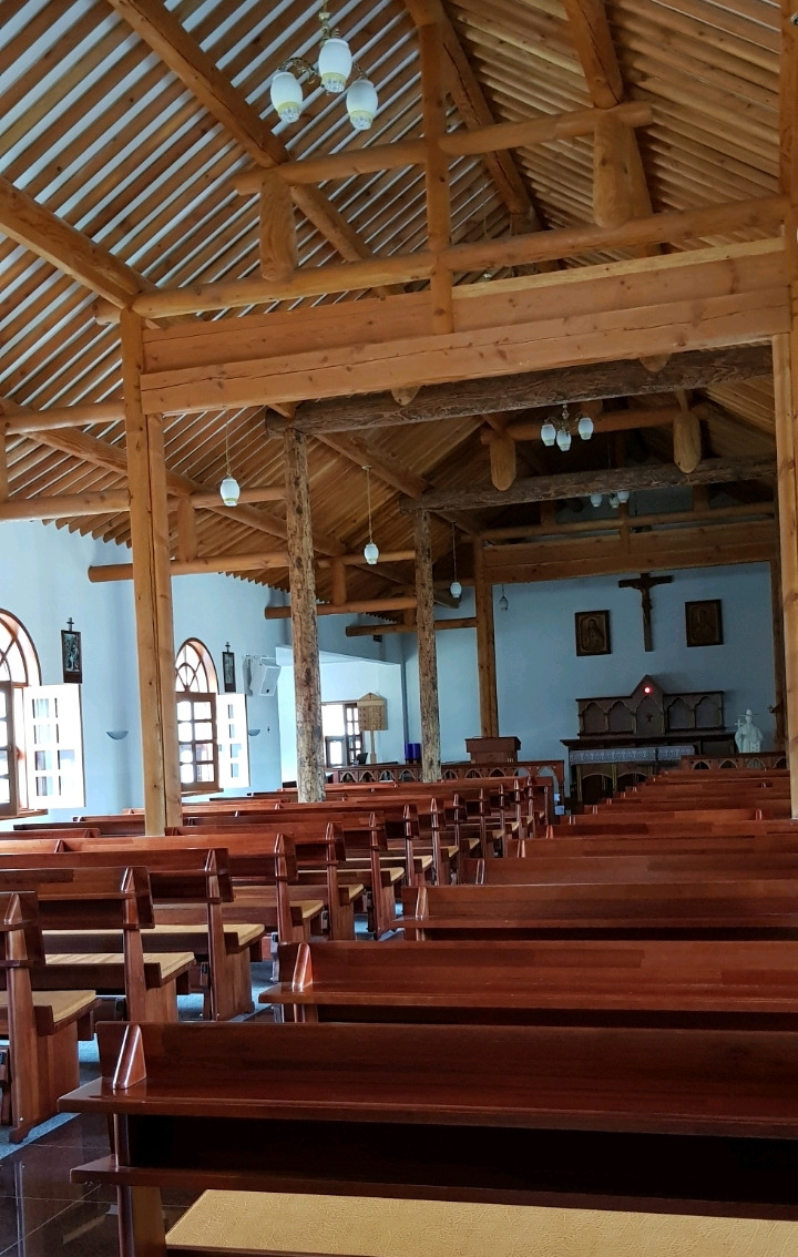 김대건 신부가 사제 서품을 받았던 상해의 김가항 성당 모습을 그대로 복원한 천주당과 김대건 신부 기념 유물전시관 내부를 찬찬히 둘러봤다. 천주당 내부 기둥과 들보 등 몇 개는 2001년 철거된 상해 김가항 성당에서 가져온 것이라고 한다.
