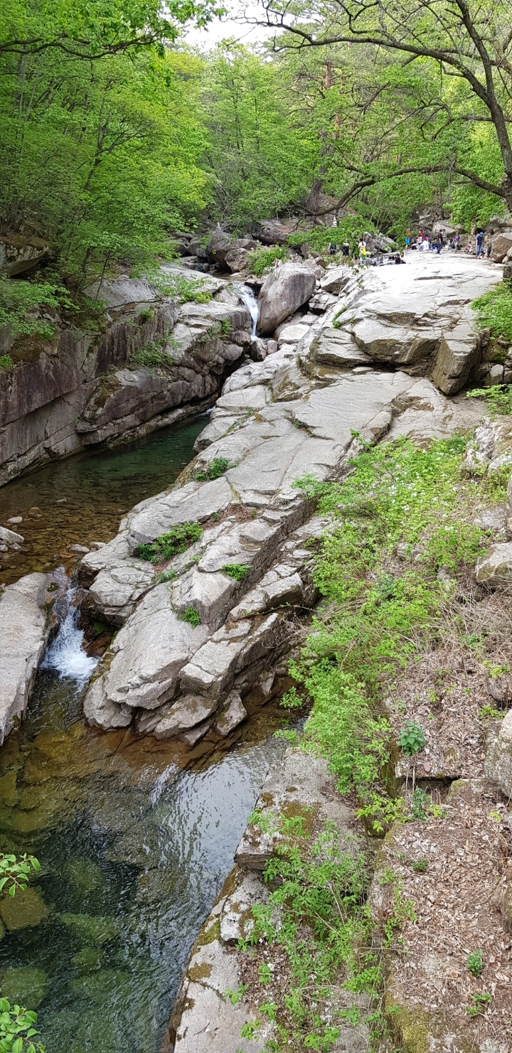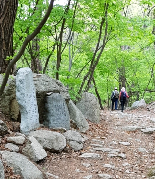 조곡천과 나란히 난 숲길에는 봄의 끝자락을 놓치지 않으려는 듯 여유로운 발걸음에 마스크를 낀 상춘객들이 적지 않다. 픽업까지 두어 시간 이상이 남아 있어 마음이 느긋하다. 길 옆 계곡에 발을 담그니 얼음장같이 찬 물이 산행의 피로를 잠시 잊게 한다.