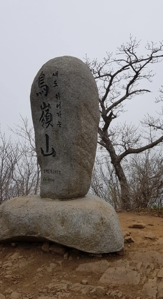 이화령에서 3km 남짓 지점 해발 1017미터 조령산 정상에 올랐다. 정상 표지석 앞뒤에 한글과 한자로 산 이름과 고도가 적혀 있다. 산정 가장자리 나무 옆에 앉아 숨을 고르고 있는 앞서 갔던 그 여우(女性山友)는 변함없이 밝은 얼굴에 지친 기색 하나 없다.