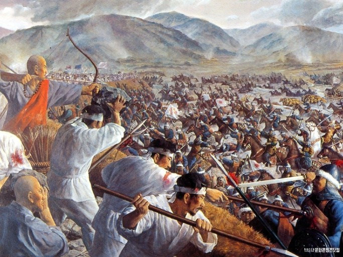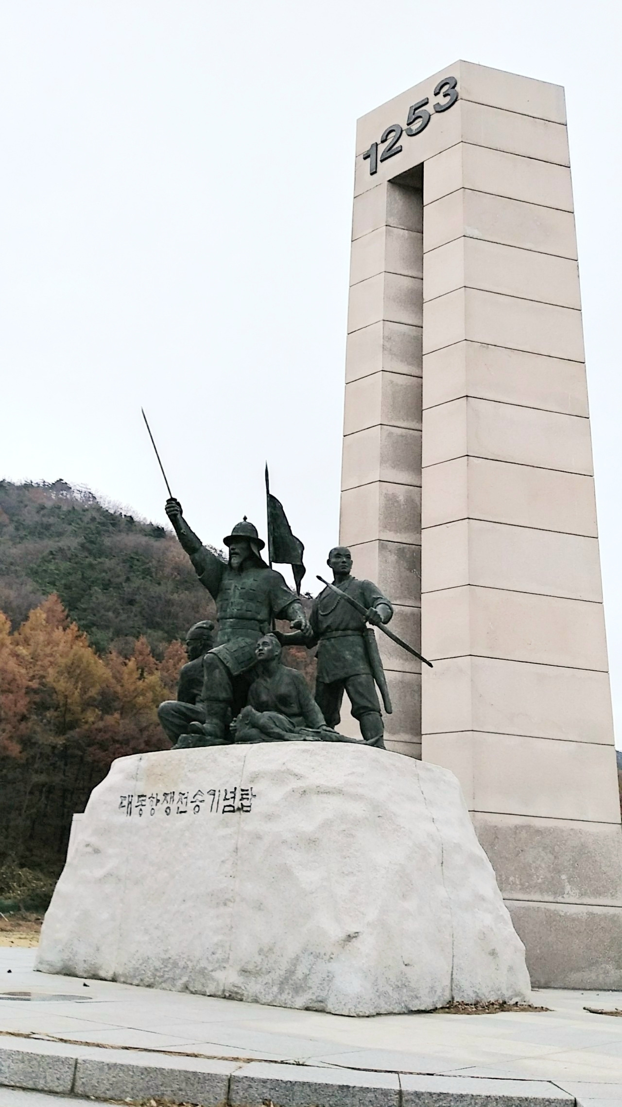 들머리 계단을 오르면 고개가 내려다 보이는 산자락 언덕 위에 대몽항쟁 전승기념탑이 우뚝 솟아 있다. 1253년 이 지역 군관 승려 농민 노비 등이 방호별감 김윤후의 지휘 하에 혼연일체로 결사 항전하여 몽고군의 제5차 침입을 격퇴시킨 쾌거를 전하는 탑이다. 김윤후는 1232년 몽고의 제2차 침입 때에도 용인 처인성에서 적장 살리타를 사살한 영웅이다.