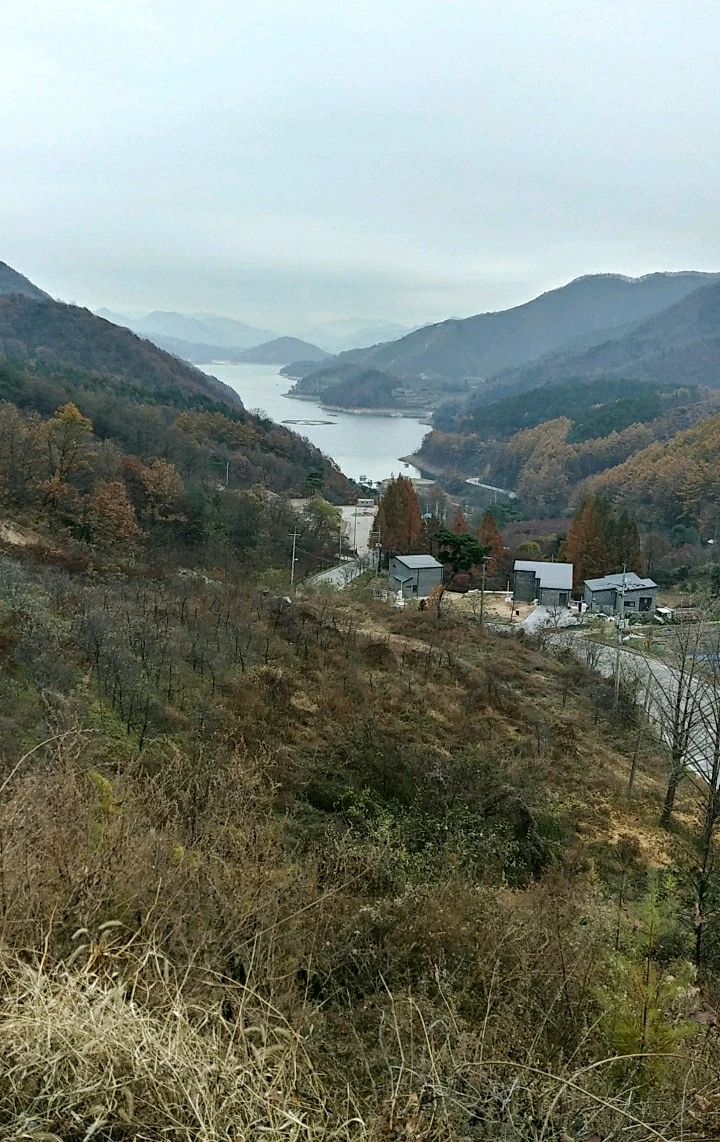 사람 발길이 드문 가파른 등산로는 낙엽이 수북하게 쌓였고 잎을 떨군 나무들은 앙상한 가지만 남았다. 능선 마루에 올라서고 제1,2 전망대가 차례로 나타나면서 왼편 나뭇가지 사이로 충주 시가지가 모습을 드러냈다. 오른편으로는 충주호가 물 빠진 갯벌 이랑에 고인 바닷물처럼 산 능선 고랑 사이를 채우고 있다.