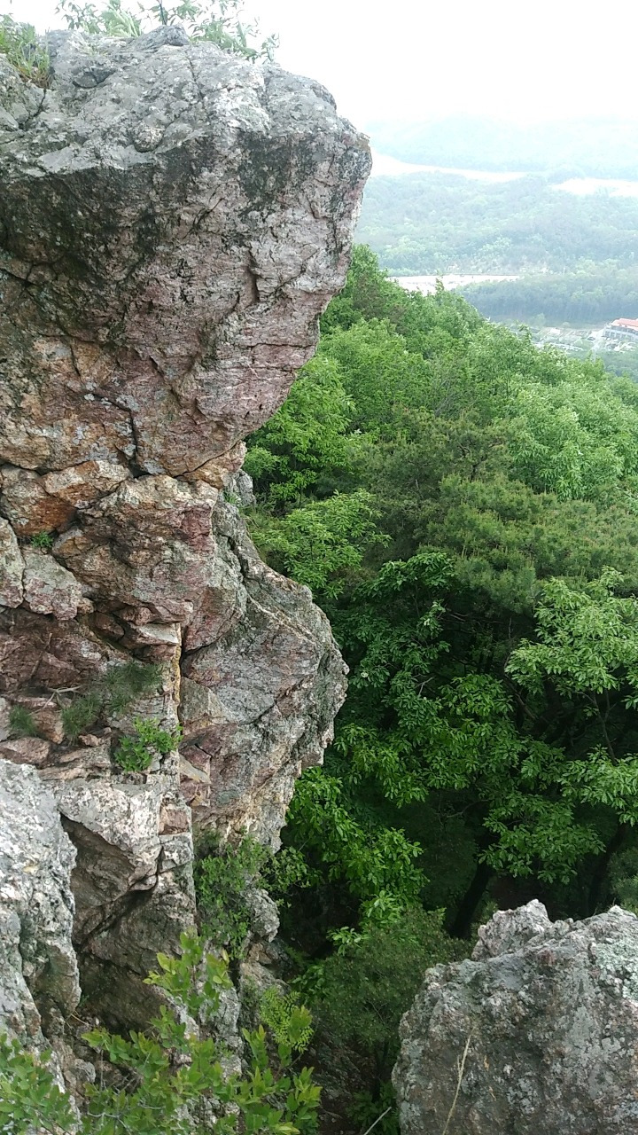 "정렬하세요. 시-작" "자- 이제 그만"... 체육대회라도 열렸는지 장암리 쪽에서 확성기 소리가 울려온다. 곳곳 낭떠러지 위에 솟은 바위에 올라서면 아래로 툭 트인 전망과 위쪽 바위 봉우리들을 도드라지게 보여준다.