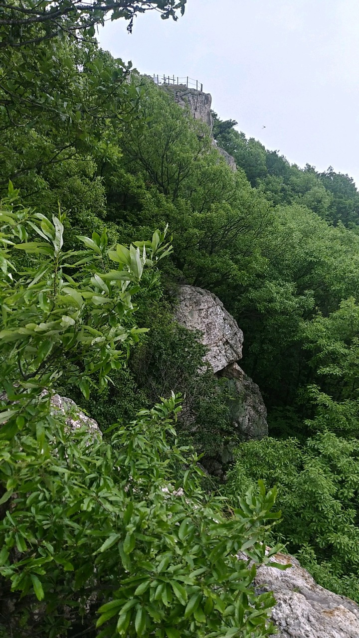 제1봉이 올려다 보이는 비탈 절벽에 마지막 선물인양 등받이 의자처럼 생긴 바위 전망대가 나온다. 너른 바위 절벽 아래로 연녹색 숲이 넓은 강처럼 휘둘러 쌓고 그 너머로 중부고속도로와 설봉산이 한눈에 들어온다. 그 아래쪽 100미터 남짓한 곳에 영보사가 기와지붕을 보이며 나타난다.