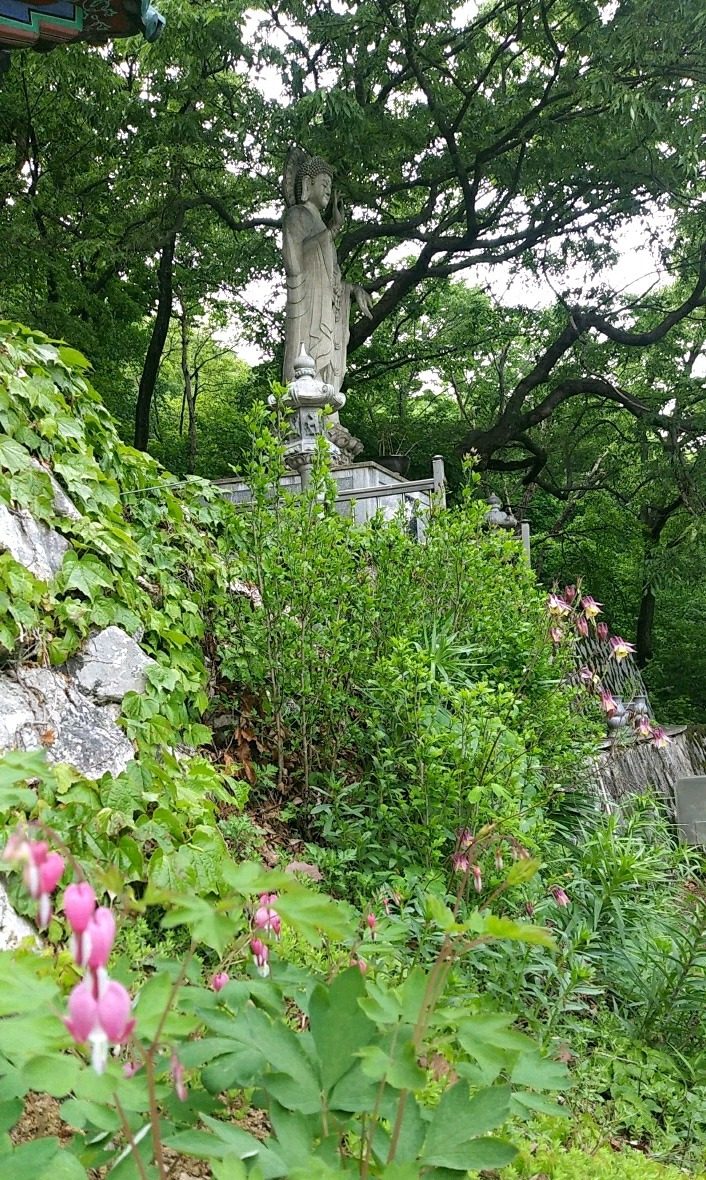 절집 뒤쪽으로 들어서면 좌측 계단 위 마당에 장독들이 모여 있고 '큰 법당' 현판이 걸린 법당과 그 우측 계단 길 위에 한 평 남짓 아담한 신신각이 앉아 있다. 마당 우측에는 석등 2기, 범종각과 아름다운 자태의 미륵불도 자리한다.