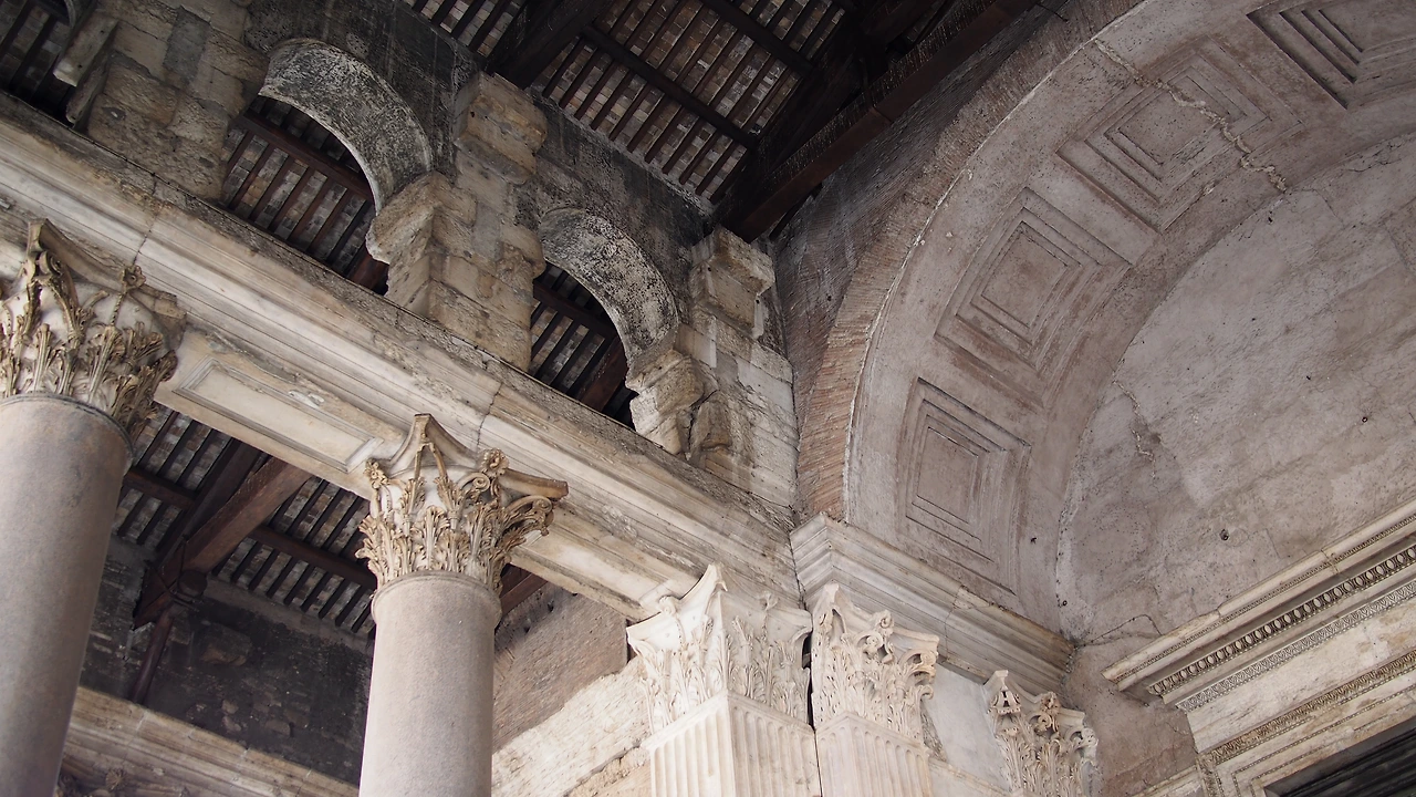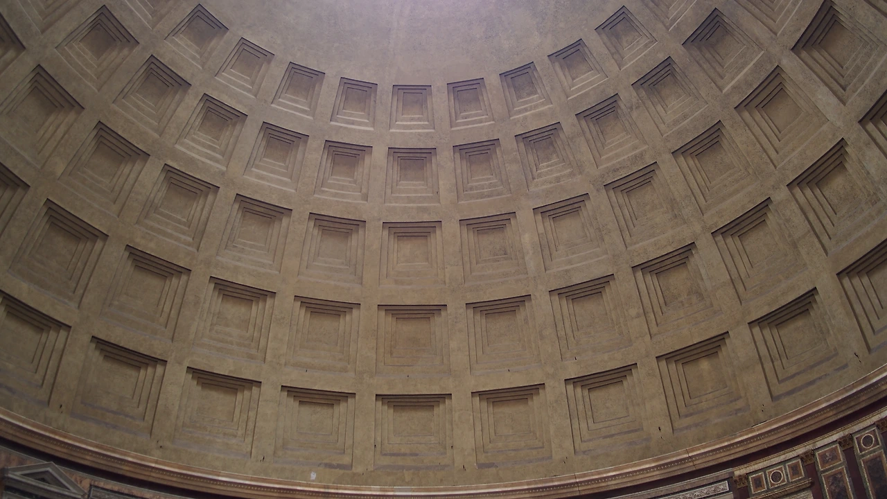 직경 43.3m에 달하는 거대한 돔은 콘스탄티노폴리스의 성 소피아 성당이 지어지기 전까지는 비견될 돔이 없었을 정도. 이른바 <완벽한 고대 건축>이라는 유럽인들의 한 목표이며, 판테온의 돔과 열주(기둥)의 양식은 르네상스 건축에 지대한 영향을 주게 된다.