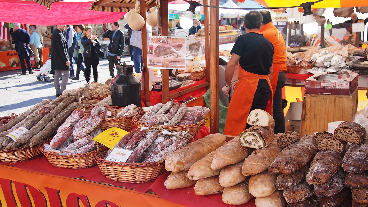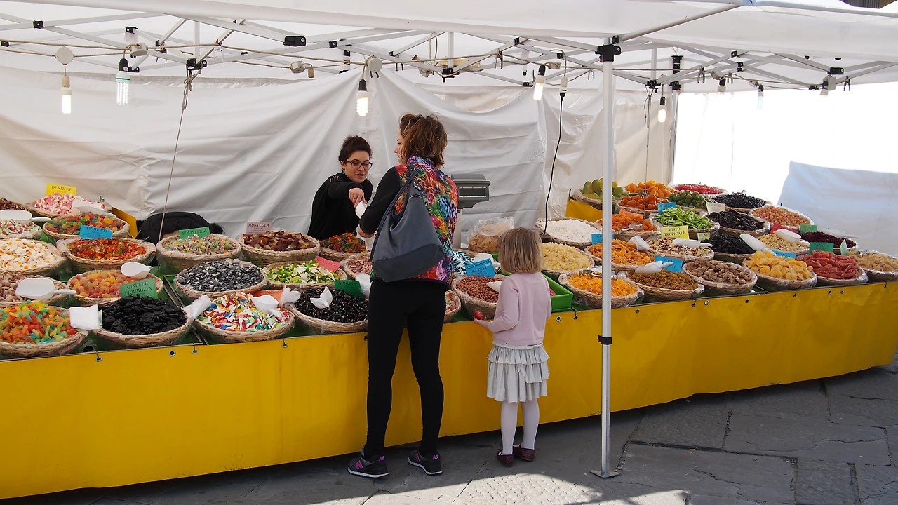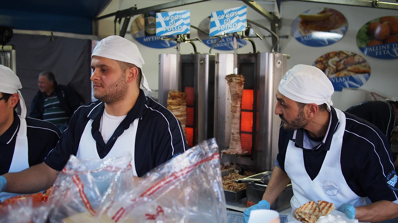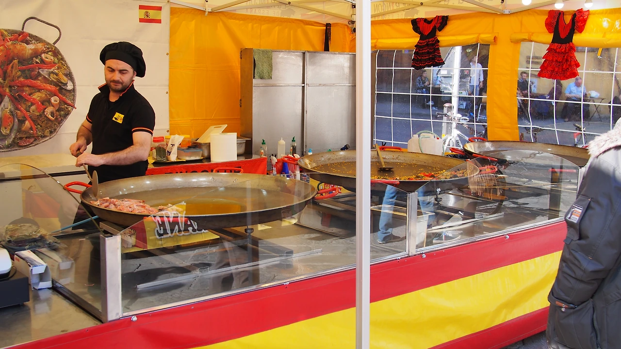 수많은 음식들이 노점으로 옹기 종이 모여서