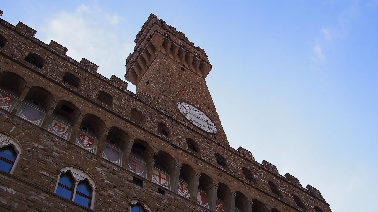시뇨리아 광장을 상징하는 건물은 94m에 달하는 거대한 탑이 있는 베키오 궁전입니다. 베키오 궁전은 1314년에 완성된 것으로 오랫동안 관공서로 사용되었으며 지금도 피렌체 시청으로 사용하고 있습니다. 웅장한 외관은 전형적인 중세풍으로 무척 딱딱하고 어둡지만, 건물 안은 여러 예술가의 수많은 작품으로 장식되어 있어 부드러움과 푸근함을 느낄 수 있답니다. 한마디로 말하면 겉과 속이 전혀 다른 건축물이지요.