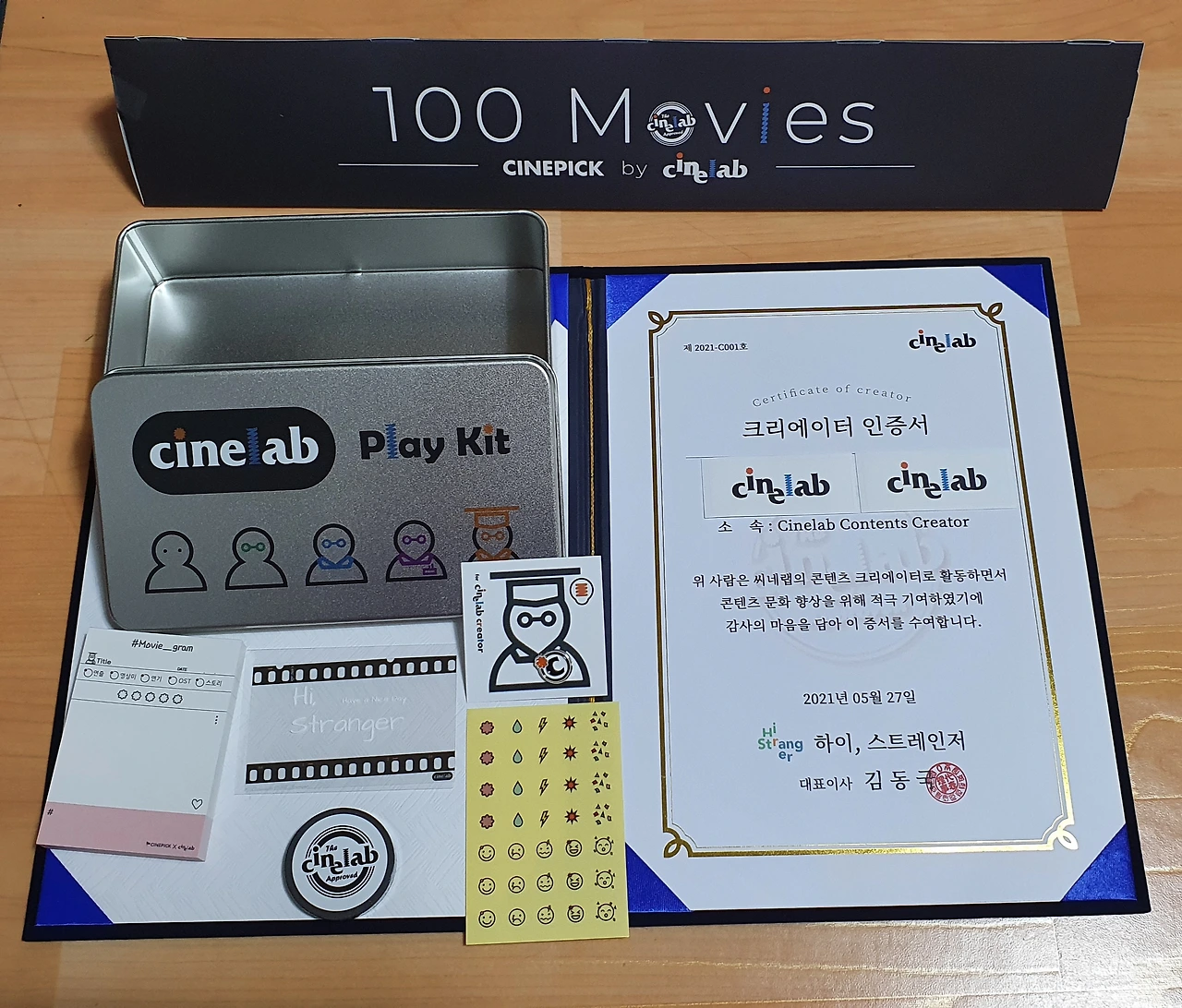 그 안에 들어있던 굿즈는 너무너무 맘에 들었다. 특히 영화 필름 모양의 아이템들이 씨네랩에 딱 어울린다고 생각되었다. 이제 틴케이스에 뭘 담아야 하나 생각해보니 메가박스에서 발급하는 오리지널 티켓을 넣기에 딱이었다.