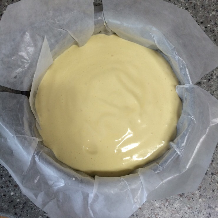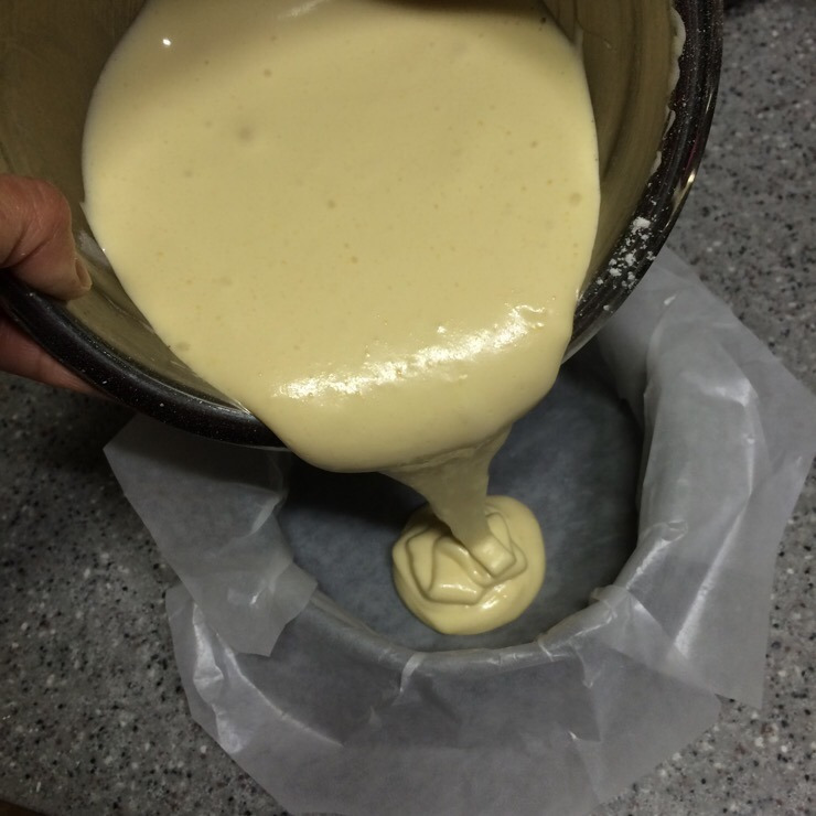 6. 팬에 부어준다. 반죽을 다 붓고 팬을 테이블에 탁탁 내리쳐서 기포를 빼준다.