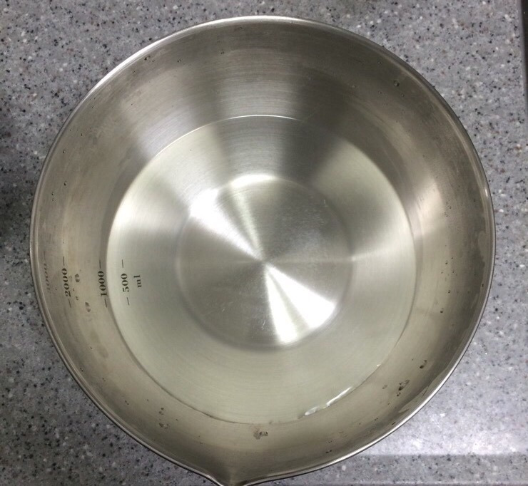 2. 믹싱을 위한 중탕 물 준비. 물 온도는 손을 넣었을 때 조금 뜨거운 정도(50~60도).