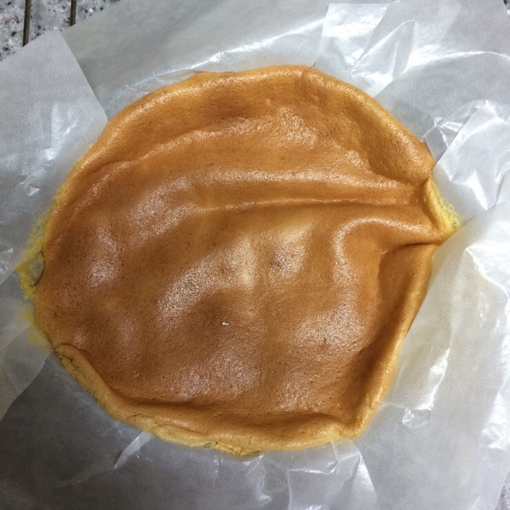8. 다 구워지면 꺼내서 식힘망에 올리고 좀 식고 나면 유산지를 떼어낸다.