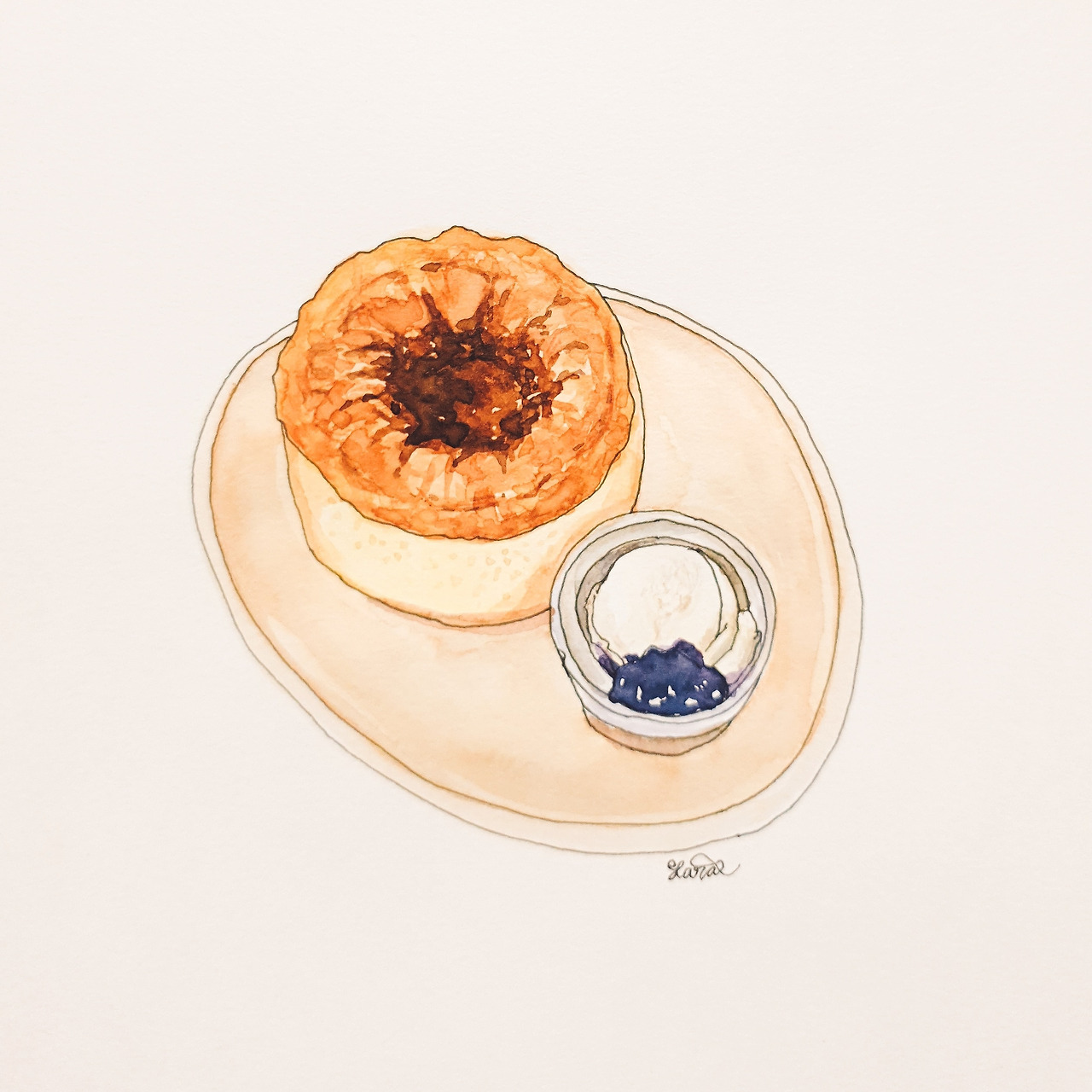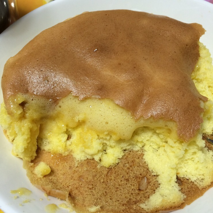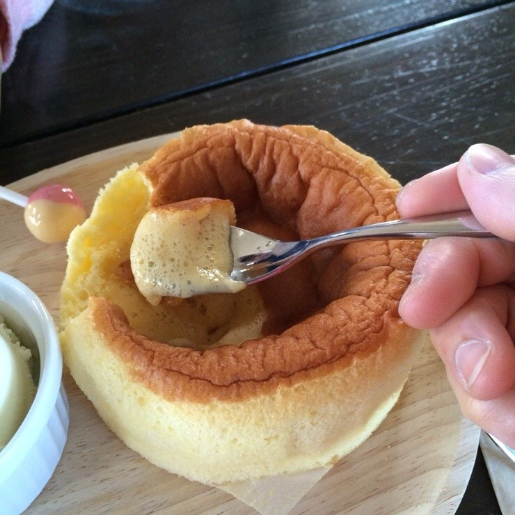 조금 기다리니 주문한 카스테라가 아이스크림과 함께 나왔다. 나온 카스테라는 가운데가 푹 꺼진 모양을 하고 있었다. 그리고 그 옆에는 포크가 아닌 스푼이 있었다. 그래서 한 스푼 떠보니 덜 익은(?) 말 그대로 반숙의 모습이 보인다. 맛은 촉촉하고 달달하다. 그렇게 살짝 반만 익혀서 반숙카스테라라고 하나보다. 달달하니 아메리카노와 같이 먹기에 참 좋았다.