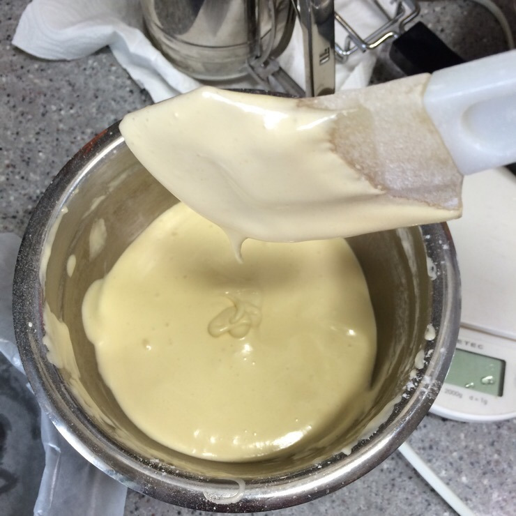 노른자 60g , 흰자 40g , 꿀 16g , 설탕 25g, 박력분 20g