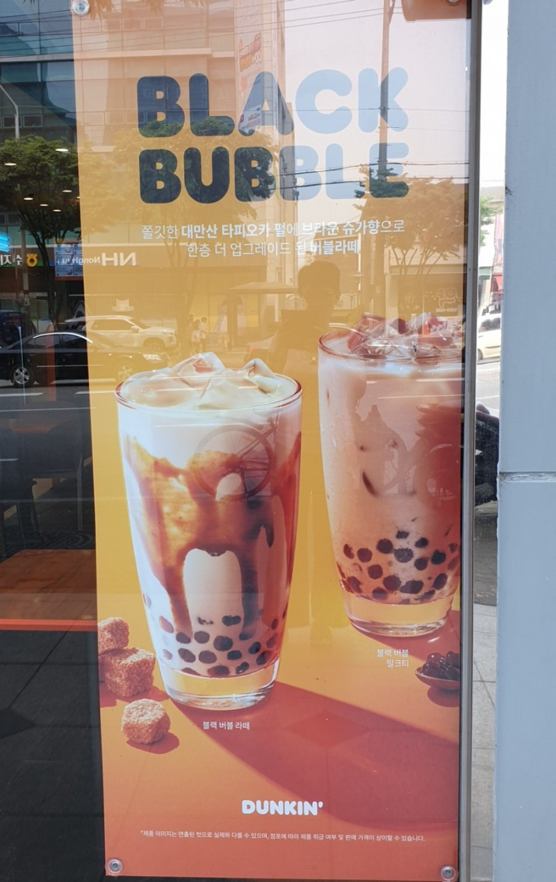 요즘 핫한 흑당밀크티가 던킨에서는 블랙버블 밀크티라는 이름으로 판매되고 있다