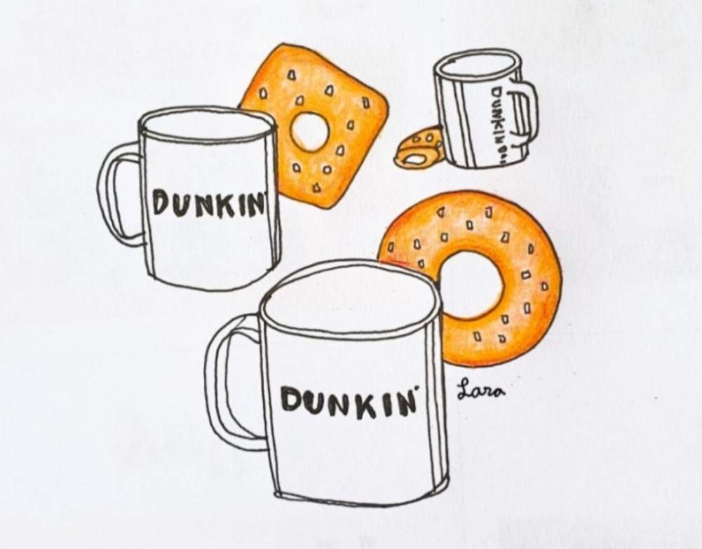 지난 3월에 던킨에 갔다가 그렸던 그림을 다시보니 컵에 도넛이 빠졌다